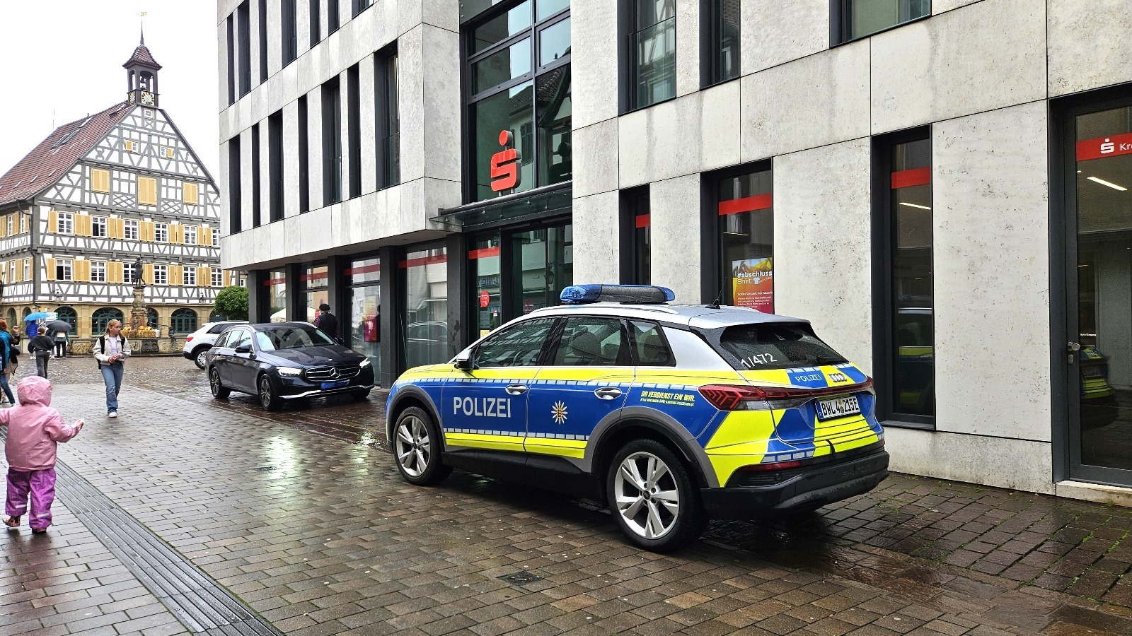 Die Polizei ist am Dienstag (22.10.), zur Mittagszeit, zu einem Überfall auf die Kreissparkasse Waiblingen (KSKWN) in der Winnender Innenstadt gerufen worden. Der Täter ist auf der Flucht. Die Polizei fahndet nach ihm, mittlerweile ist auch eine erste Beschreibung veröffentlicht worden. Auch ein Hubschrauber war am Dienstag im Einsatz, ist aber gegen 13.40 Uhr bereits wieder abgezogen worden. Laut Polizeisprecher habe der Täter wohl kein Geld erbeutet. Wie geht's den Beschäftigten der