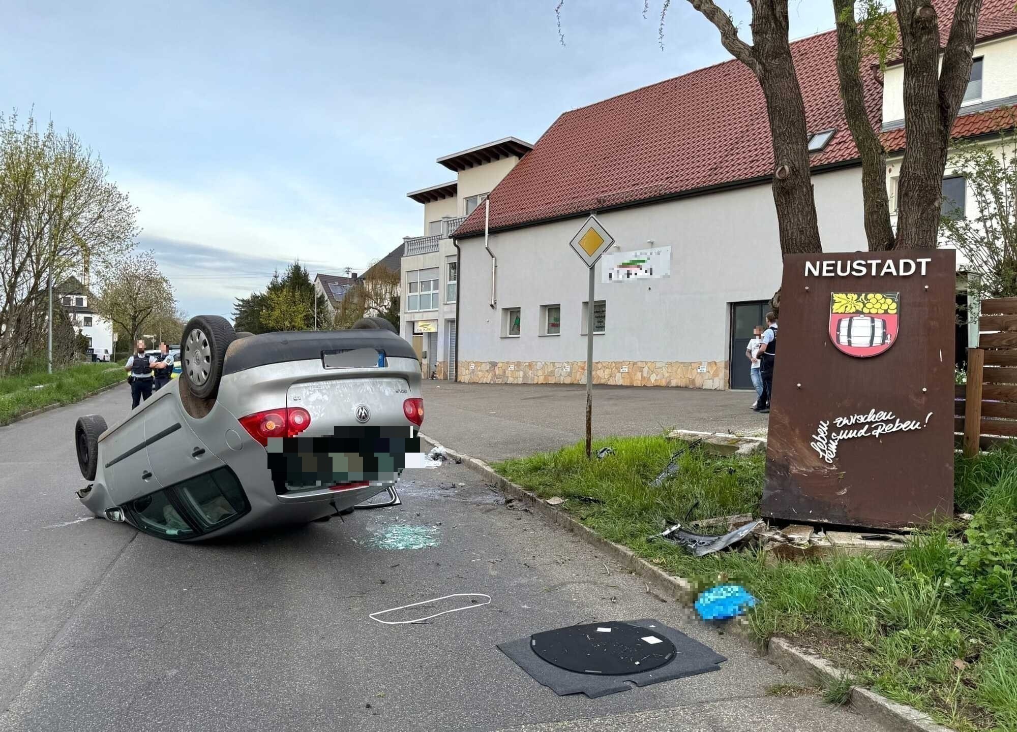 Ein Auto ist am Ostersonntag (31.03.) am Ortseingang in Waiblingen-Neustadt umgekippt* und auf dem Dach liegen geblieben. Die 21 Jahre alte Fahrerin wurde bei dem Unfall schwer verletzt.