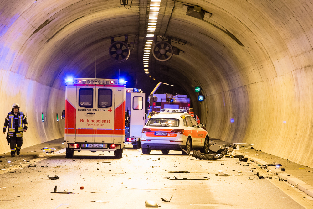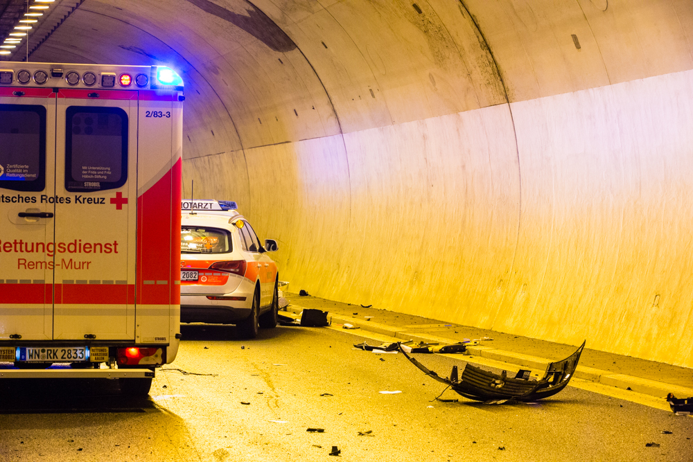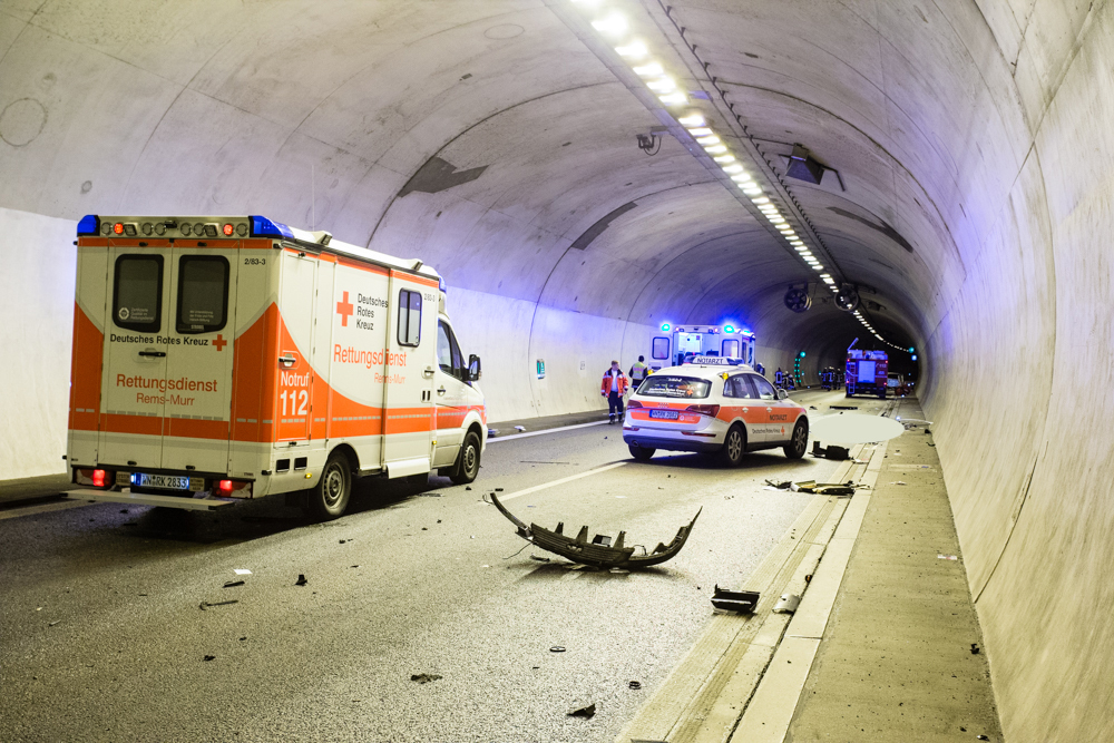 Am PKW entstand Sachschaden in Höhe von 5000 Euro. Dieser musste abgeschleppt werden. Für Reinigungsarbeiten war die Tunnelröhre in Richtung Stuttgart bis 8.30 Uhr gesperrt.