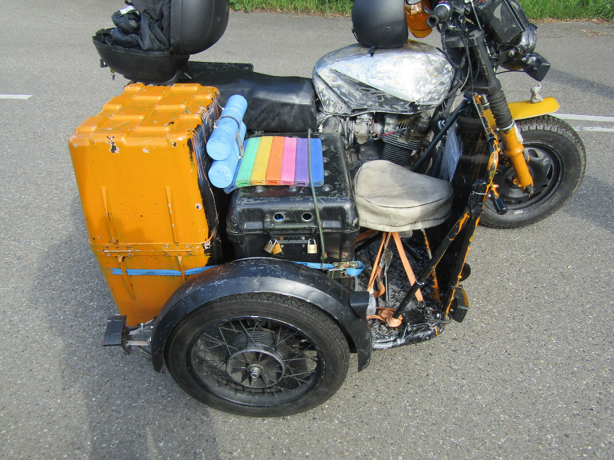 Mit einem außergewöhnlichen Gefährt hat ein Familienvater am Sonntag die Polizei auf sich aufmerksam gemacht - und muss nun mit einer Anzeige rechnen. Der 51-Jährige war laut Polizeibericht gegen 17.45 Uhr mit seinem Motorrad auf der B14 in Richtung Stuttgart gefahren. Mit dabei: Seine drei Kinder. Für den gemeinsamen Familienausflug hatte der Vater das Motorrad und den Beiwagen ausgebaut und dabei seiner Kreativität freien Lauf gelassen. Um ausreichend Sitzmöglichkeiten zu schaffen, hatte er unter anderem einen Campinghocker sowie mehrere Schwimmhilfen verbaut.
