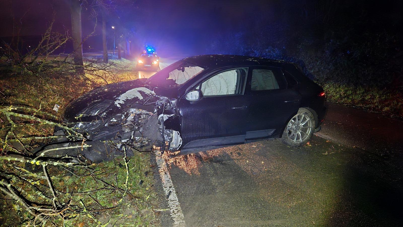 Am Dienstagabend (3.12.) ist es in der Bühlstraße in Fellbach zu einem schweren Unfall gekommen. Wie die Polizei auf Nachfrage berichtet, wollte der 18-jährige Fahrer eines Porsches gegen 21.50 Uhr in Fahrtrichtung Pfarrstraße in einer langgezogenen Rechtskurve mit nicht angepasster Geschwindigkeit überholen. Beim Ausscheren verlor er die Kontrolle über den Porsche und kam nach links von der Fahrbahn ab. Dort prallte er frontal gegen einen Baum. Der Porsche drehte sich und blieb auf der
