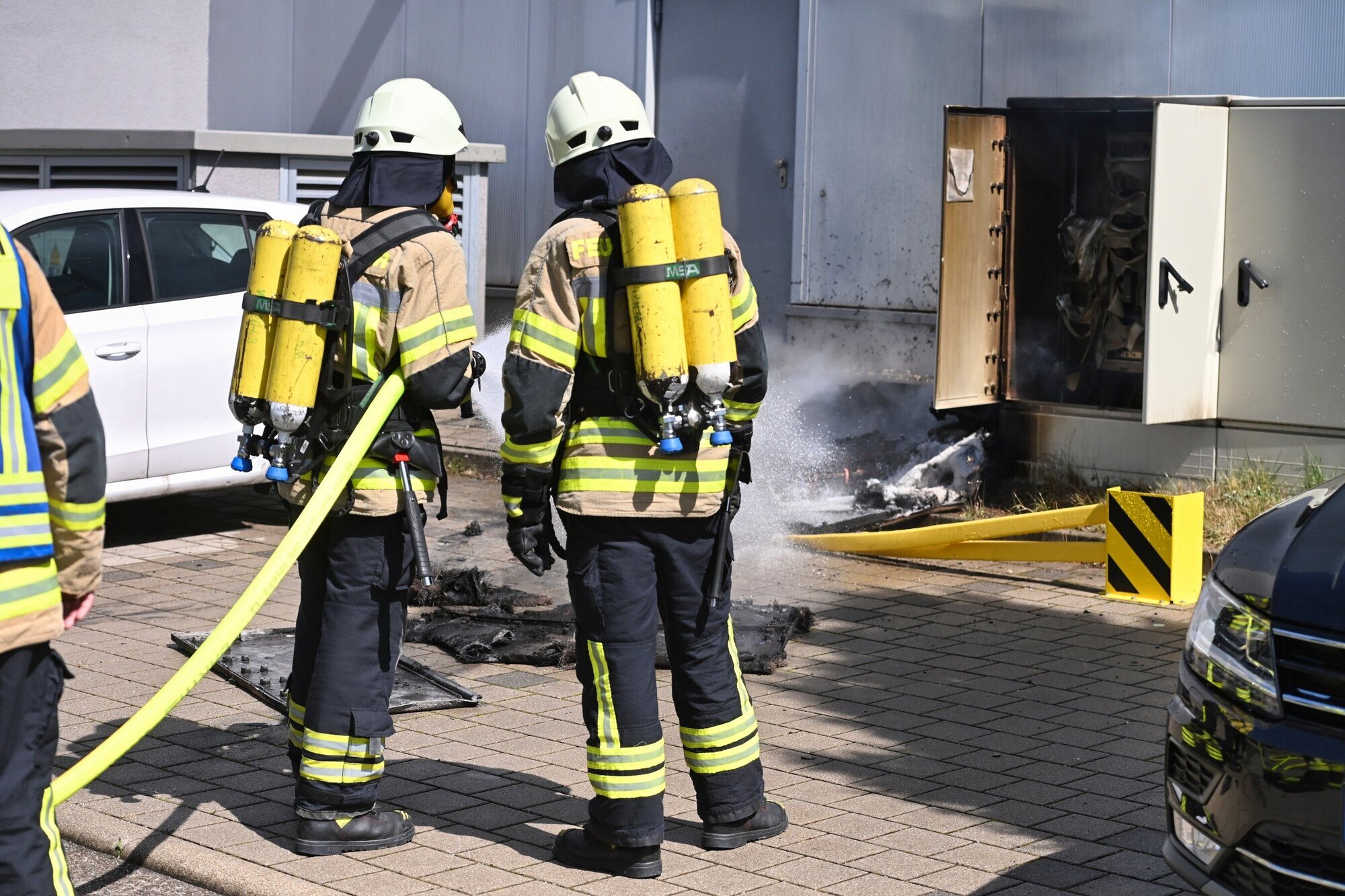 „Da der Schaltschrank im Innern mehrere Tausend Volt hatte, konnte die Feuerwehr nur mit
