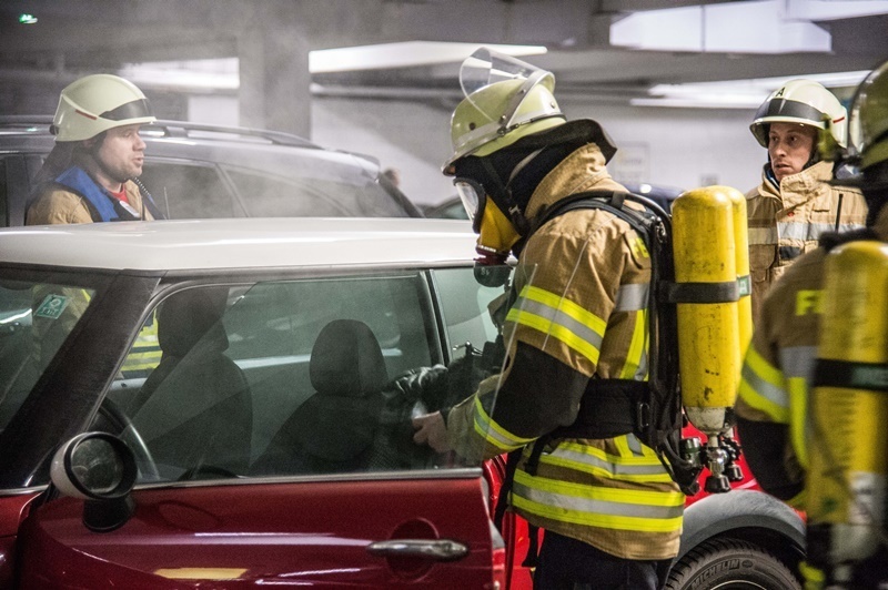 Rauch aus einem Auto in einem Parkhaus an der Fellbacher Bühlstraße hat am Donnerstagabend einen Feuerwehreinsatz ausgelöst. Die Feuerwehr hat den betroffenen Mini mit dem Schlüssel der Besitzerin geöffnet und nach der Ursache gesucht. Mit Hilfe der Polizeibeamten wurde der Mini aus dem Parkhaus geschoben. Vermutlich hatte ein technischer Defekt die Rauchentwicklung ausgelöst. Die Fellbacher Feuerwehr war mit vier Fahrzeugen vor Ort.
