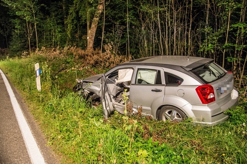 In der Nacht von Freitag auf Samstag kam es auf der Landstraße zwischen Kirchenkirnberg und Wildgarten zu einem schweren Verkehrsunfall. Gegen 0.10 Uhr fuhr eine 26-Jährige mit ihrem Audi A3 die L1150 von Kirchenkirnberg in Richtung Wildgarten. Kurz nach der Abzweigung zur Neumühle wich sie einem Tier aus, geriet dabei auf die Gegenfahrbahn und stieß mit einem entgegenkommenden Dodge zusammen. Der entgegenkommende wurde seitlich abgelenkt, stieß gegen einen Baumstumpf und überschlug sich. Der Pkw der Verursacherin kam ebenfalls von der Fahrbahn ab.