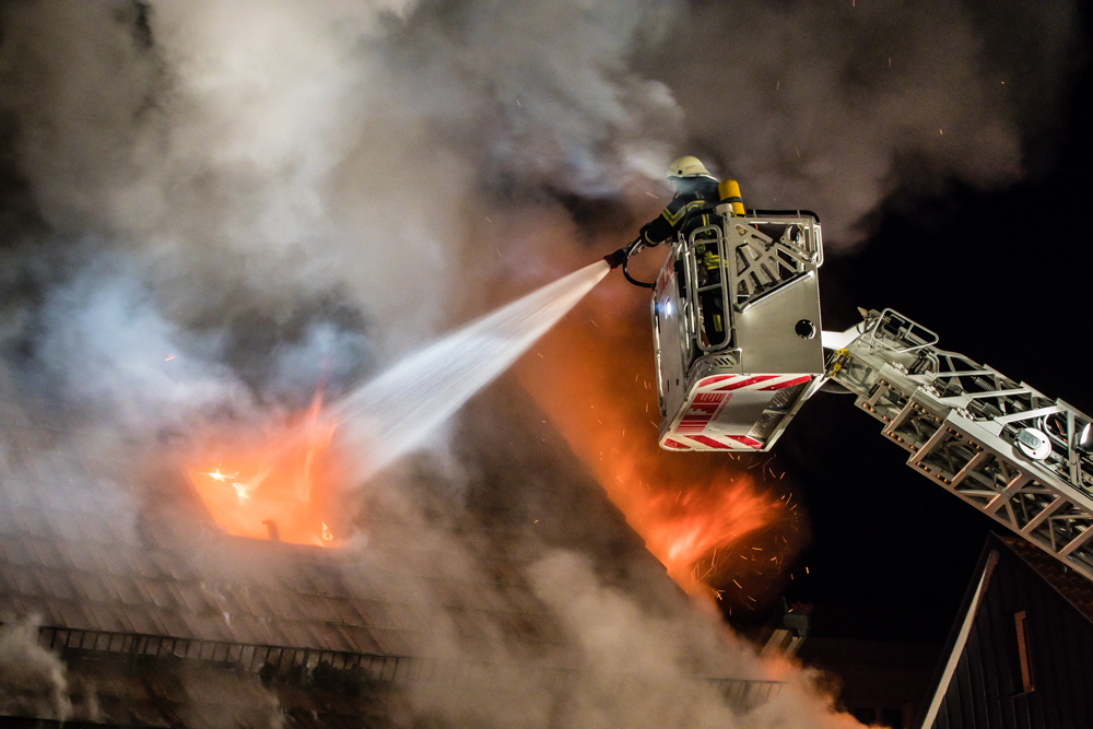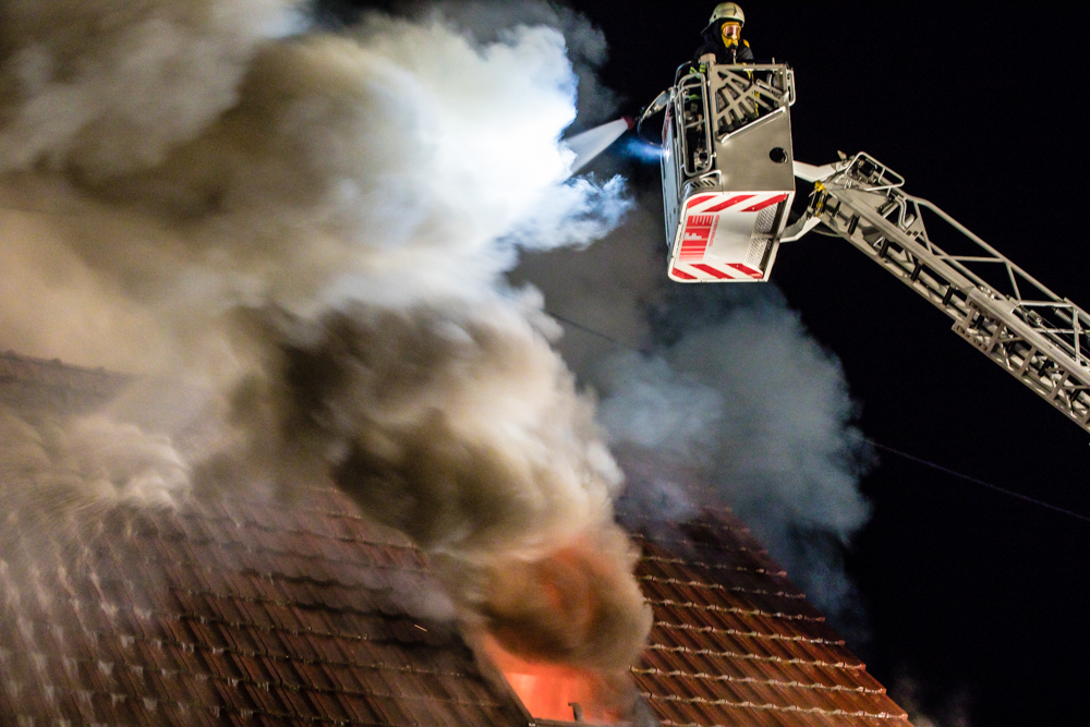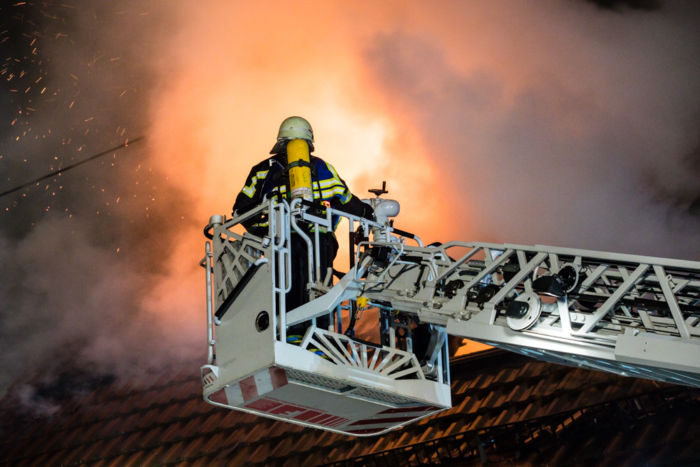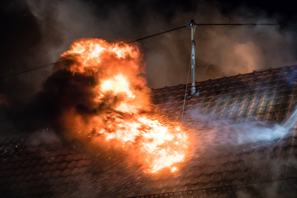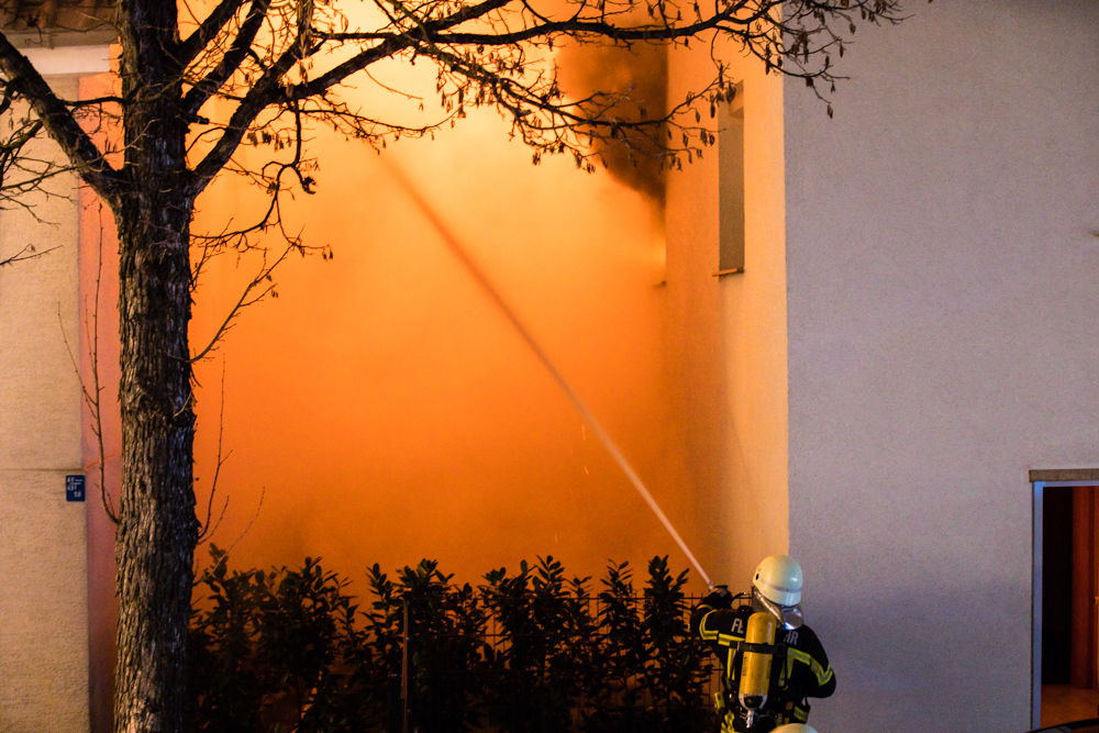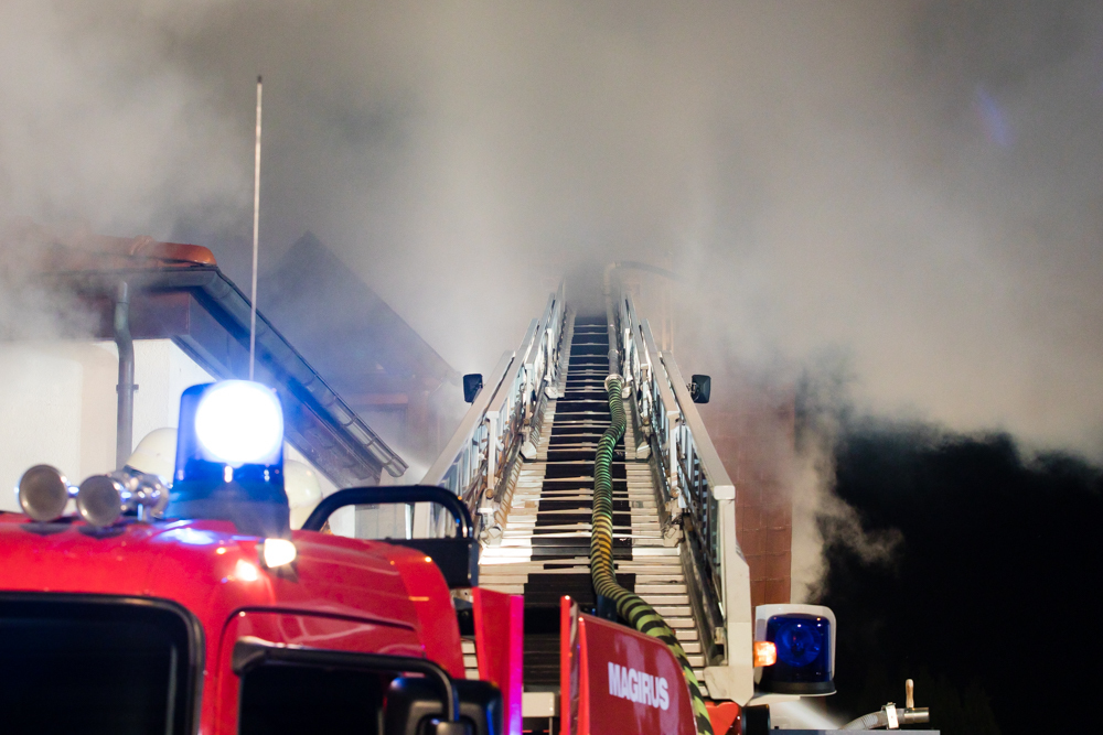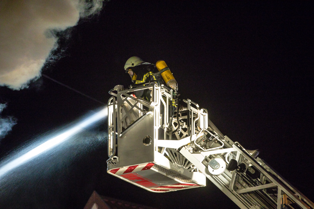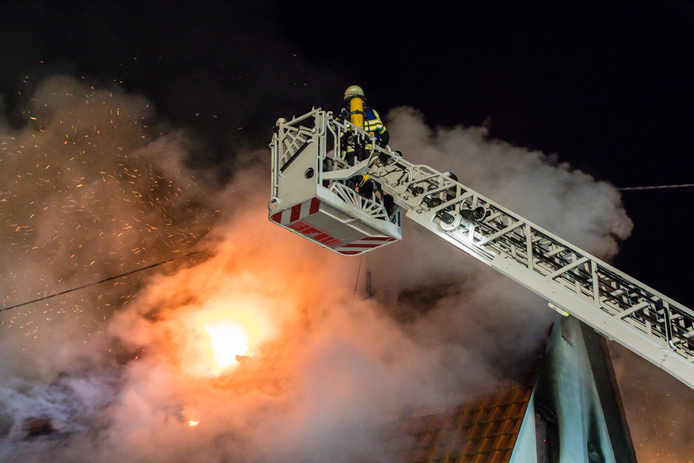 Gegen 23:25 Uhr ging bei der Feuerwehr der erste Notruf ein, Feuer in einem Wohnhaus in der Hohenacker Straße. Beim Eintreffen der ersten Fahrzeuge brannte der Dachstuhl bereits lichterloh und dehnte sich auf den Anbau aus. Die Löscharbeiten dauerten Stunden. Unterstützt wurde die Feuerwehr Waiblingen von ihren Kameraden aus Fellbach und Weinstadt.