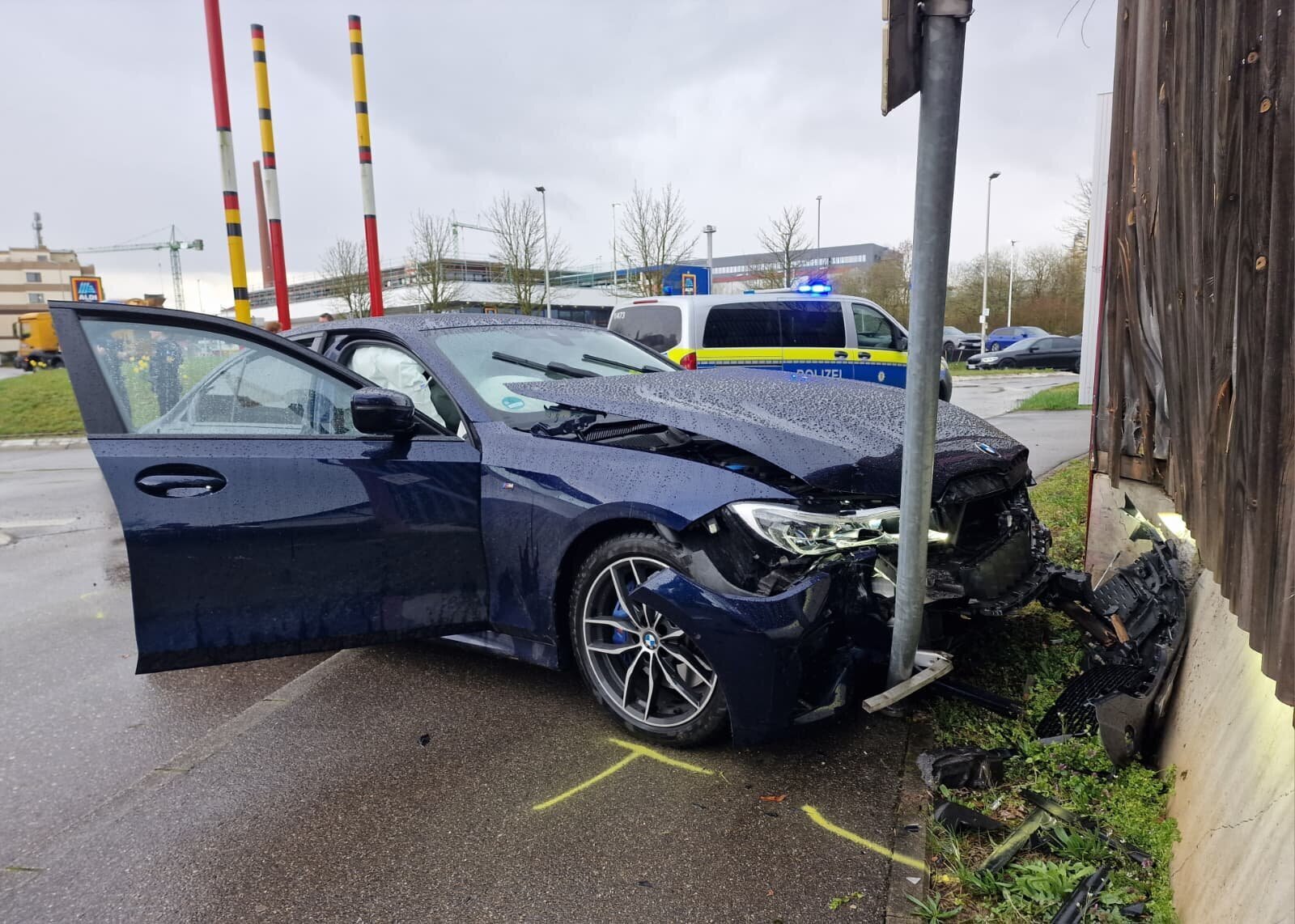 Leutenbach. Bei einem schweren Verkehrsunfall in Leutenbach hat sich am Montagnachmittag (16.03.) eine Person schwer verletzt. Der Unfall ereignete sich an einem Kreisverkehr in der Winnender Straße unweit des dortigen Aldis. Das Auto prallte frontal gegen ein Straßenschild und eine Lärmschutzwand.