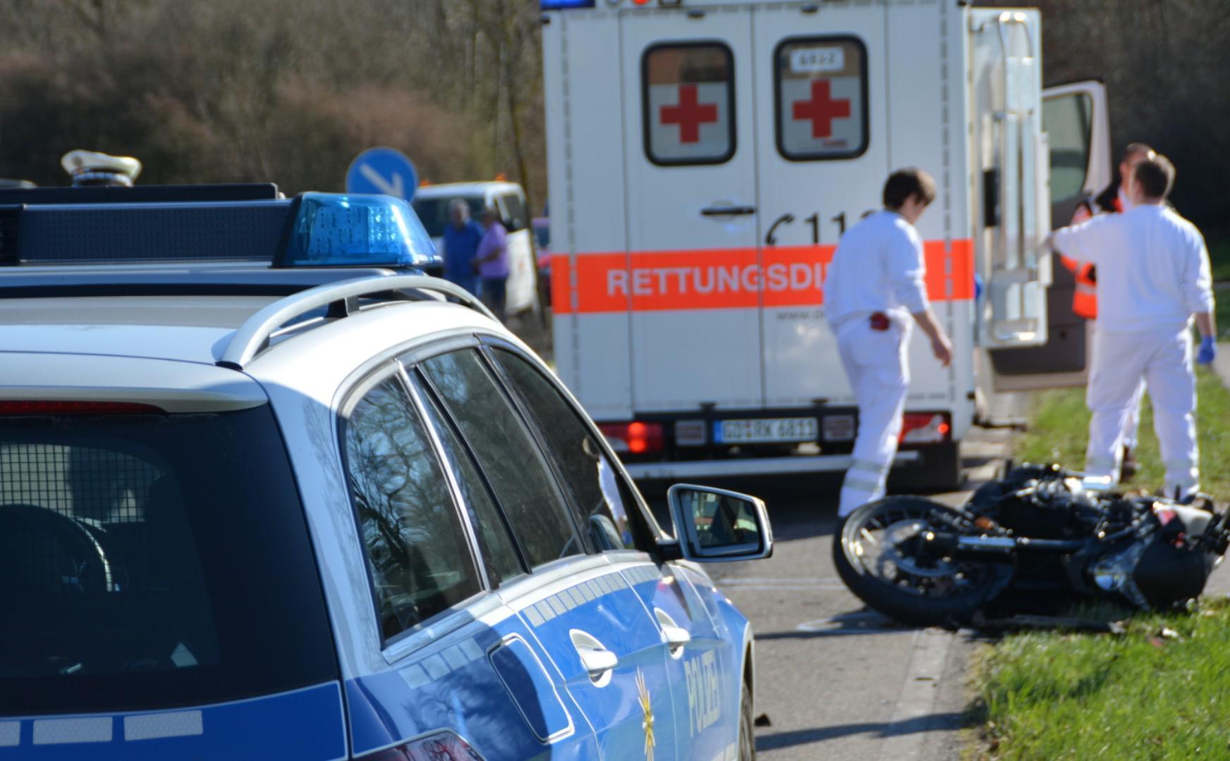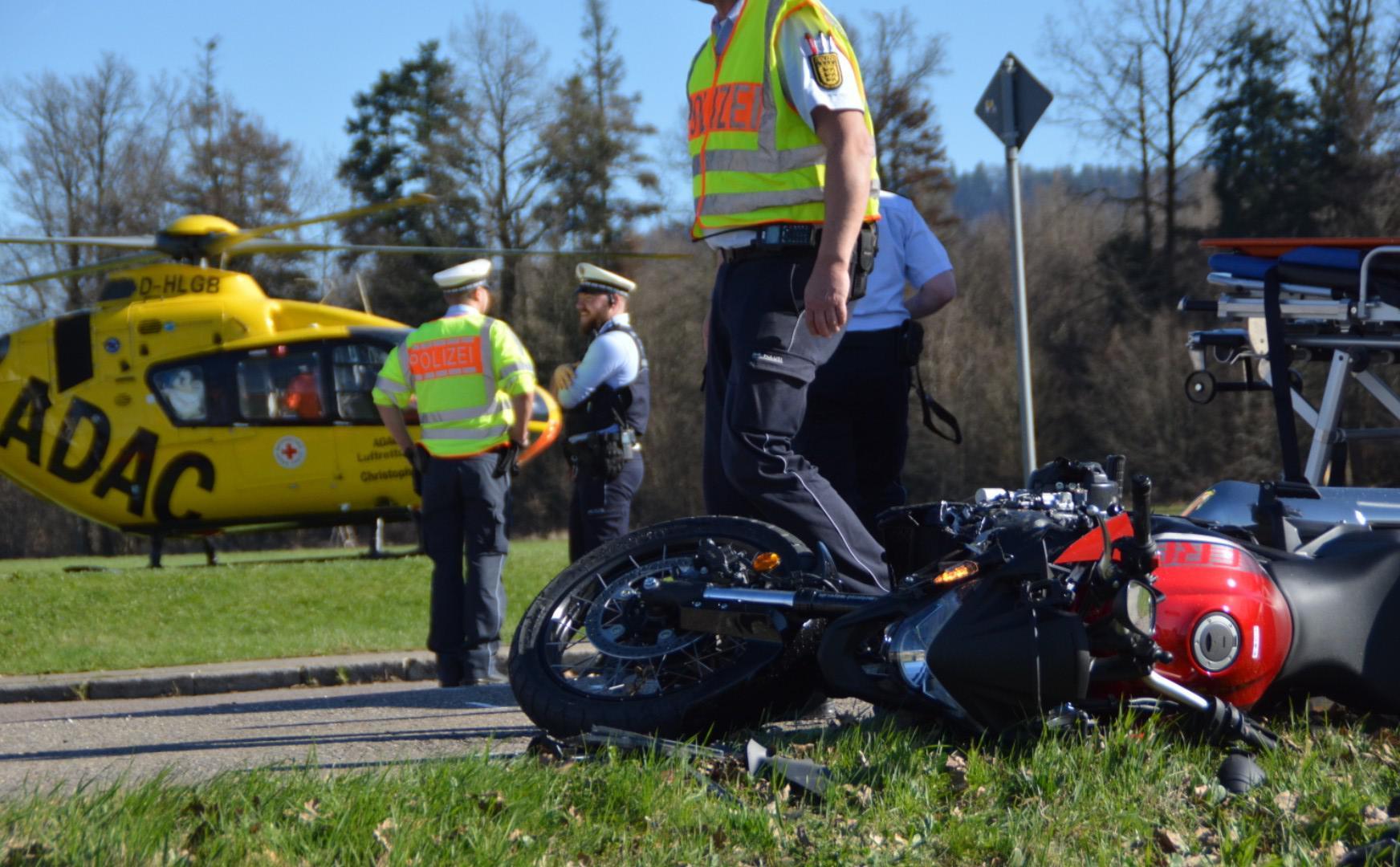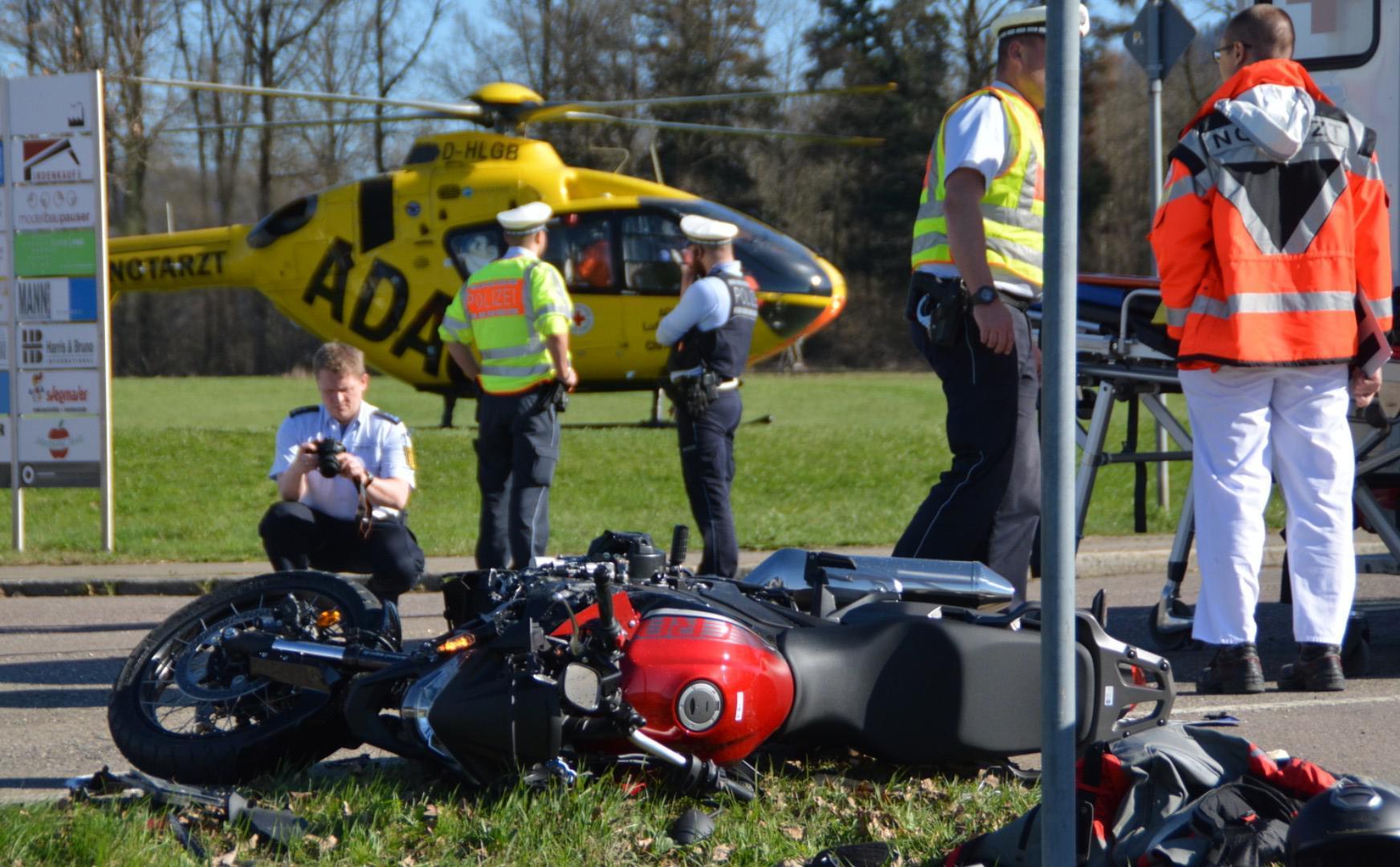 LKW erfasst Motorradfahrer - Rettungshubschrauber im Einsatz