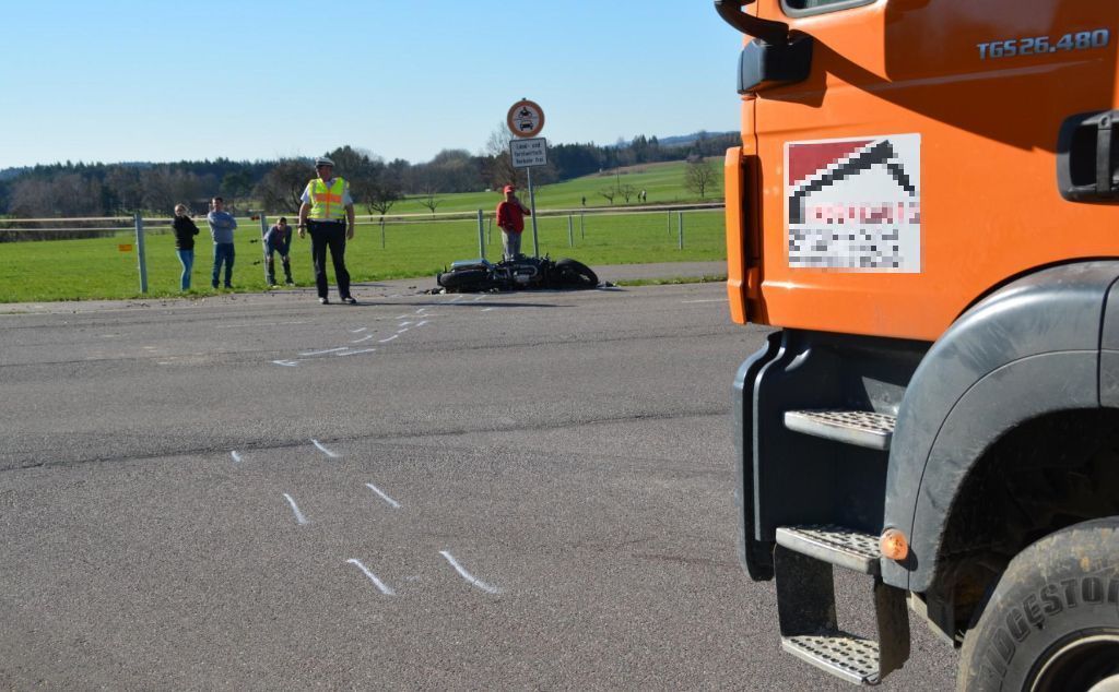 Ein 24-jähriger Lkw-Fahrer war mit seinem Muldenkipper auf der Kreisstraße zwischen Waldstetten und Bettringen unterwegs und wollte nach links auf die Landstraße in Richtung Rechberg einbiegen. Hierbei übersah er einen 61-jährigen Kradfahrer, der mit seinem Motorrad von Rechberg in Richtung Straßdorf unterwegs war.