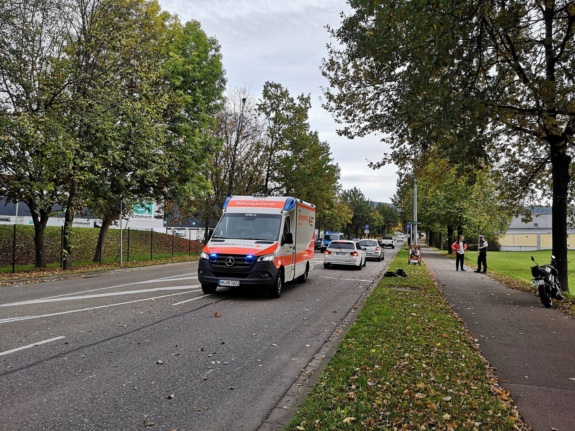 Schwer verletzt wurde ein 19 Jahre alter Motorradfahrer am Sonntagnachmittag bei einem Verkehrsunfall in der Benzstraße in Schorndorf.