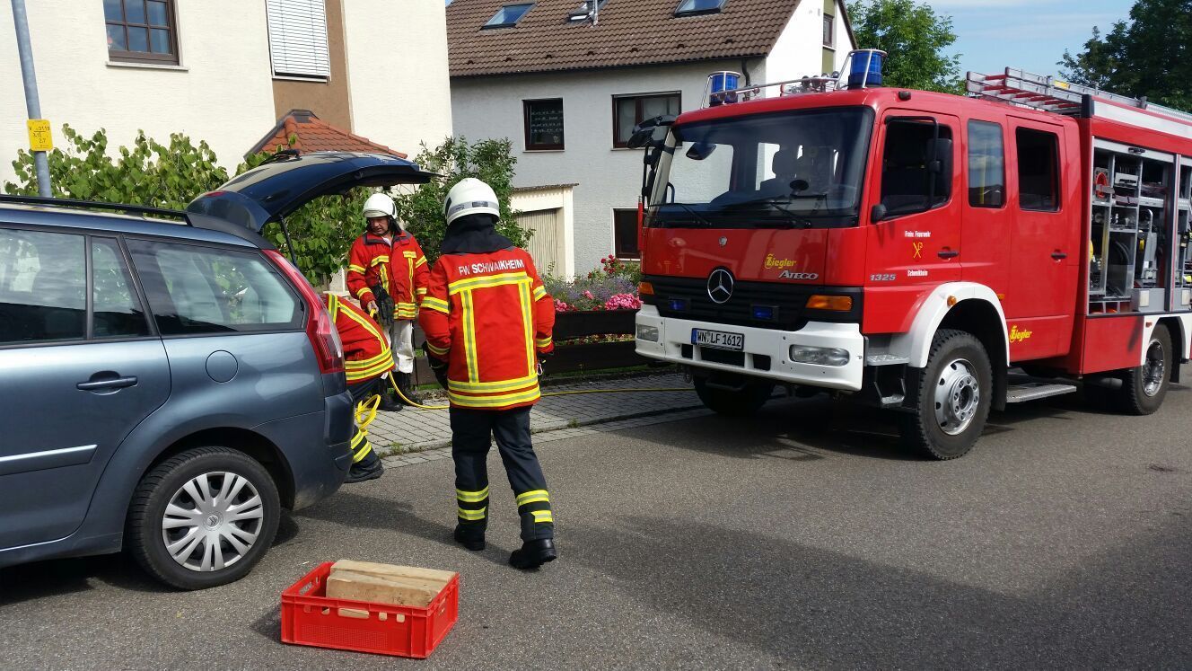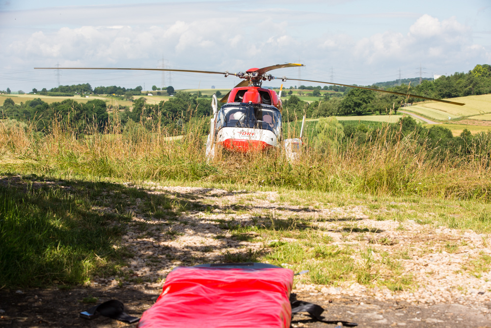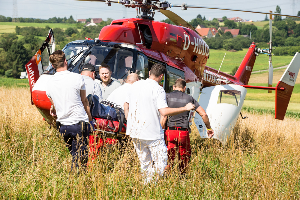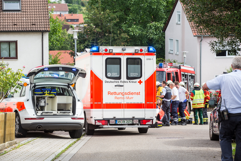 Die Feuerwehren aus Schwaikheim und Winnenden wurden hinzugerufen, da zunächst der Verdacht bestand, der Mann könne unter dem Transporter eingeklemmt sein. Der Mann konnte dann aber doch von Notarzt und weiteren Rettungskräften unter dem Fahrzeug hervorgezogen und versorgt werden. Ein Rettungshubschrauber, der im benachbarten Feld landen musste, brachte den verletzten Mann ins Krankenhaus.