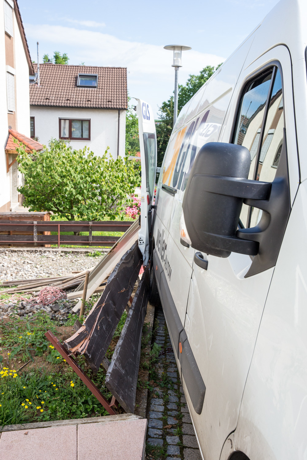 Der Mann hatte seinen Lieferwagen gegen 9.30 Uhr in der Lindenstraße abgestellt und vergessen die Handbremse anzuziehen. Als er bemerkte, dass sein Fahrzeug zu rollen begann, versuchte er das Wegrollen mit seinen Händen am Heck zu verhindern. Dabei geriet er unter den Transporter, wurde überrollt und etwa 50 Meter mitgeschleift. Das Fahrzeug prallte gegen einen Zaun und einen Citroen C4 Picasso. Dort kam es schließlich zum Stehen.
