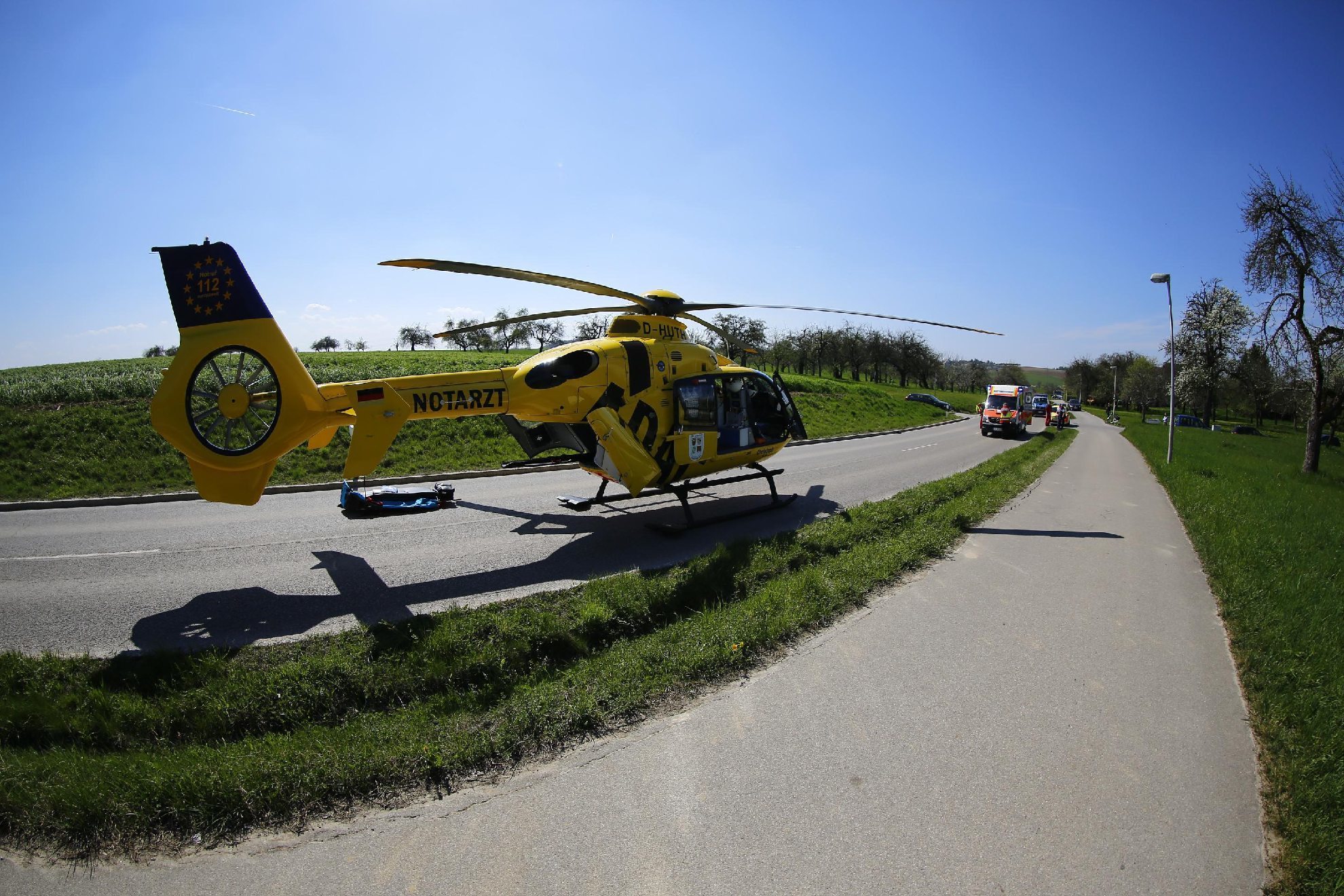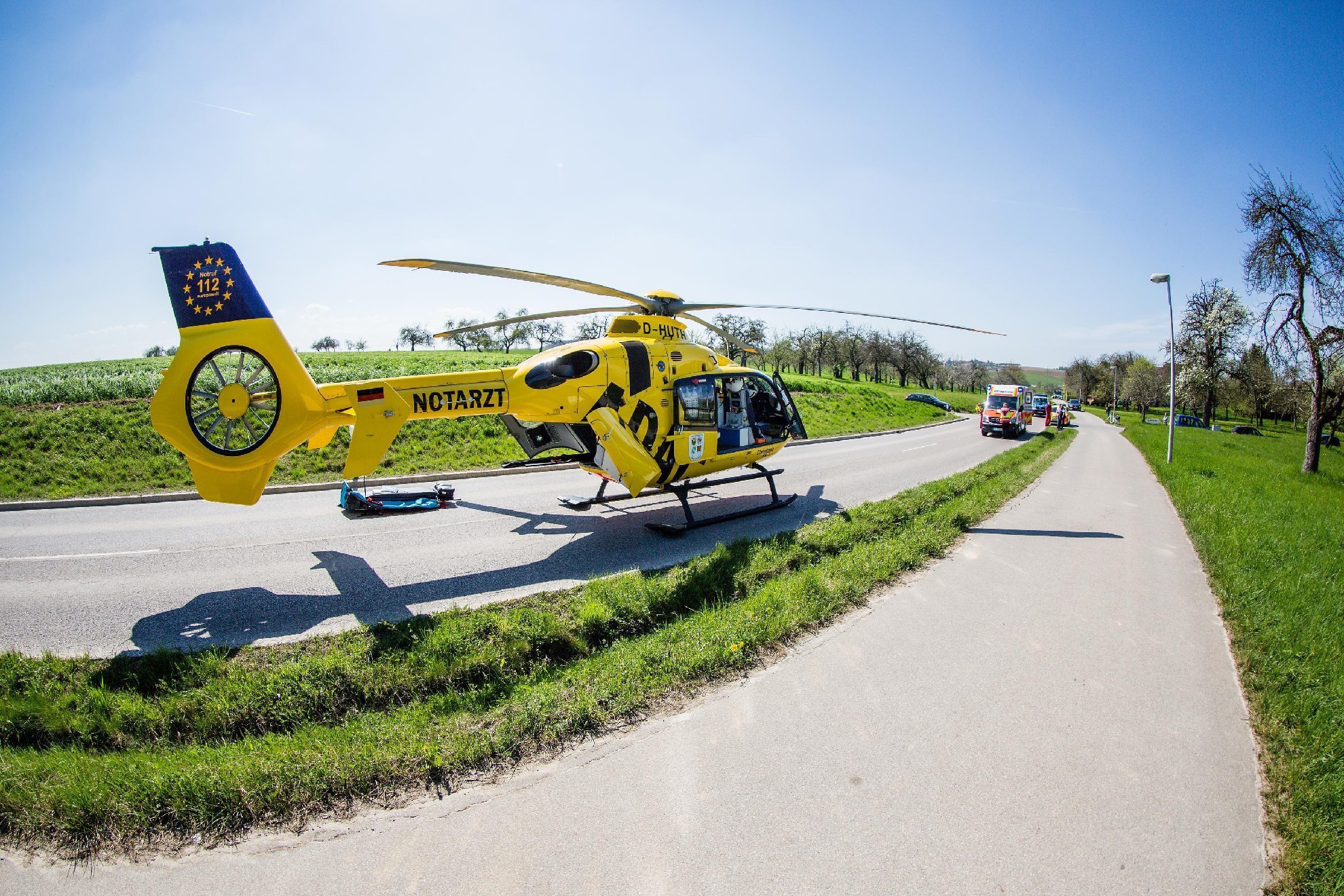 Er wurde vom Rettungsdienst und Notarzt erstversorgt und anschließend mit einem Rettungshubschrauber in eine Klinik geflogen.