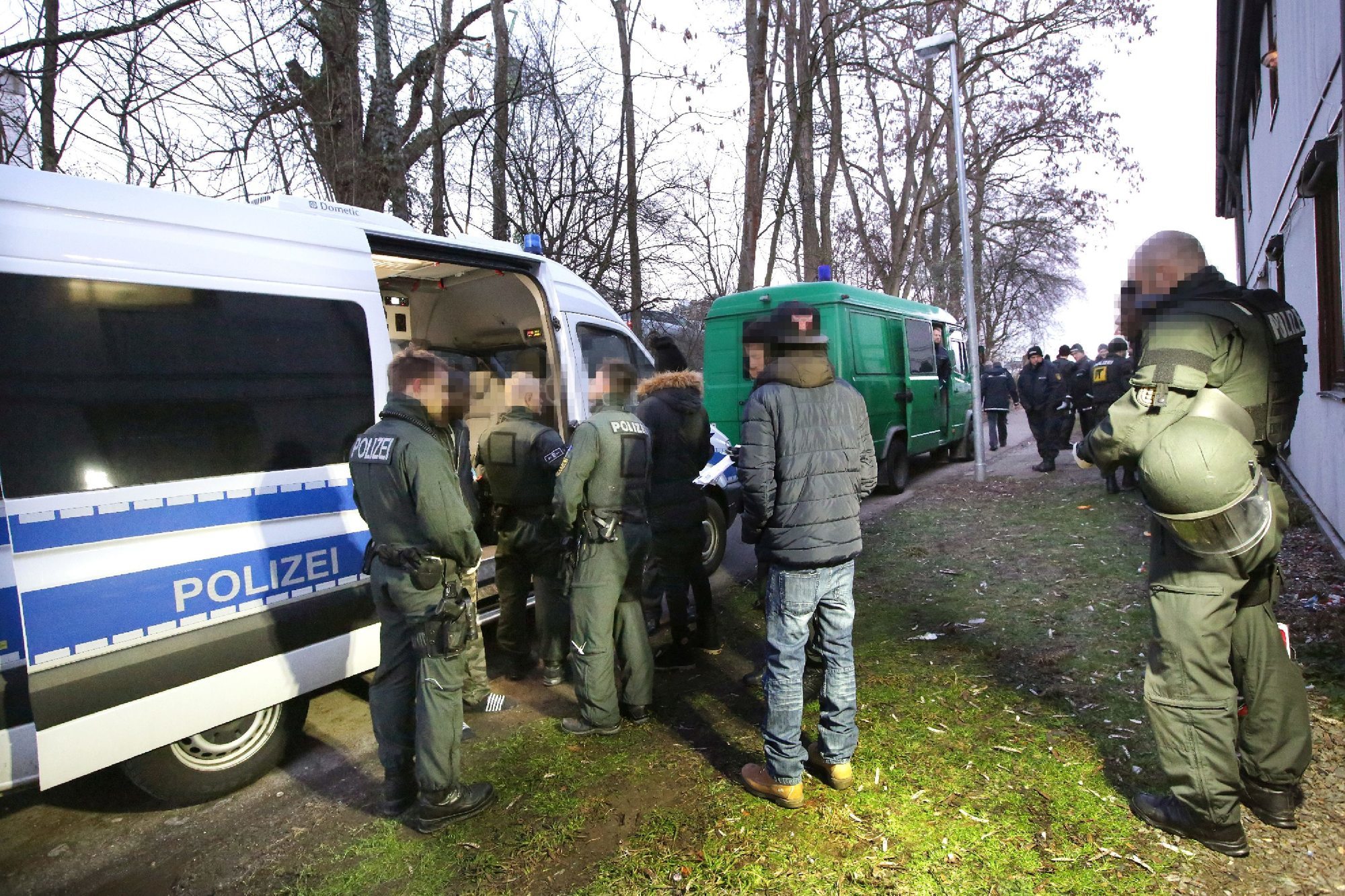 Das Gebäude wird offiziell von 51 alleinstehenden Männern aus sechs Nationen, vorwiegend aus dem afrikanischen Raum bewohnt. Einsatzbeamte untersuchten die Zimmer insbesondere nach Drogen und Diebesgut. Vier Haftbefehle - gegen zwei Gambier, einen Algerier und einen Kosovaren - brachte die Polizei zum Einsatz mit. Gegen drei Gambier und zwei Algerier wurden am Freitag Durchsuchungsbeschlüsse vollzogen. Die Männer stehen unter Verdacht, gewerbsmäßig mit Drogen zu handeln. Die Personalien der Bewohner wurden von Spezialkräften überprüft. Ziel dieser Maßnahme war es, die Identität der Flüchtlinge, die sich derzeit in der Unterkunft aufhalten, dort aber nicht zugewiesen sind, festzustellen. So will die Polizei weitere Erkenntnisse auch aus anderen europäischen Ländern über diese Personen erlangen.