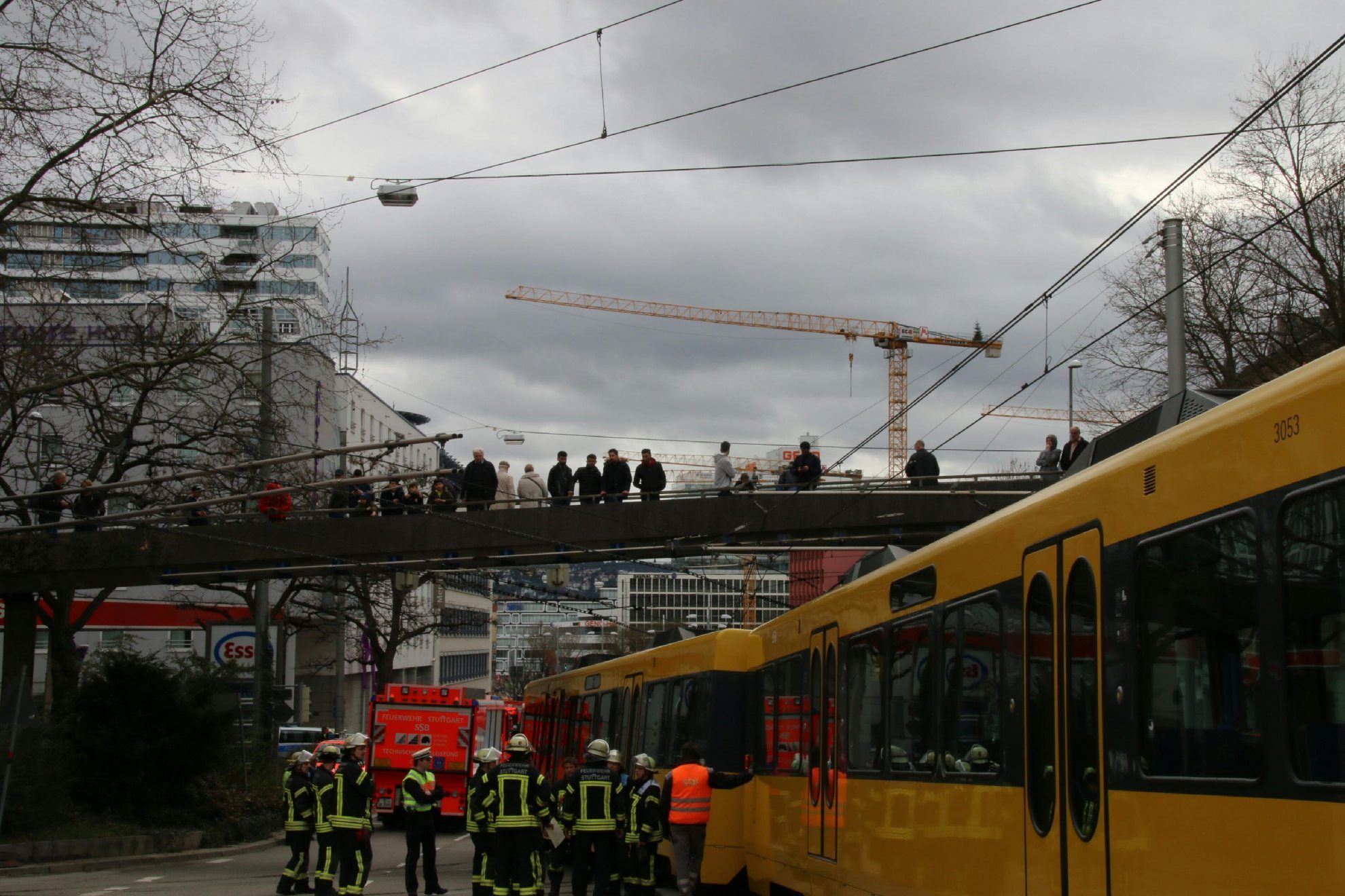 Weichenanlage. Als der vordere Teil des Zuges die Weiche passiert hatte, stellte diese sich um, so dass der hintere Teil weiter in die Friedhofstraße abbog. Dabei sprangen zwei Drehgestelle aus den Schienen. Ungefähr 30 Fahrgäste wurden danach unverletzt von der Feuerwehr und dem Rettungsdienst evakuiert. Die SSB richtete in Zusammenarbeit mit der Taxizentrale einen Ersatzverkehr ein. Der Feuerwehr gelang es schließlich die Stadtbahn wieder einzugleisen. Die Heilbronner Straße (B27) war deshalb bis gegen 19 Uhr ab der Wolframstraße in Richtung Pragsattel gesperrt, der Stadtbahnverkehr konnte gegen 18.45 Uhr wieder freigegeben werden. Weshalb es zu der technischen Störung der Weiche kam ist laut Polizei noch nicht bekannt, der Schaden beläuft sich auf mehrere zehntausend Euro.