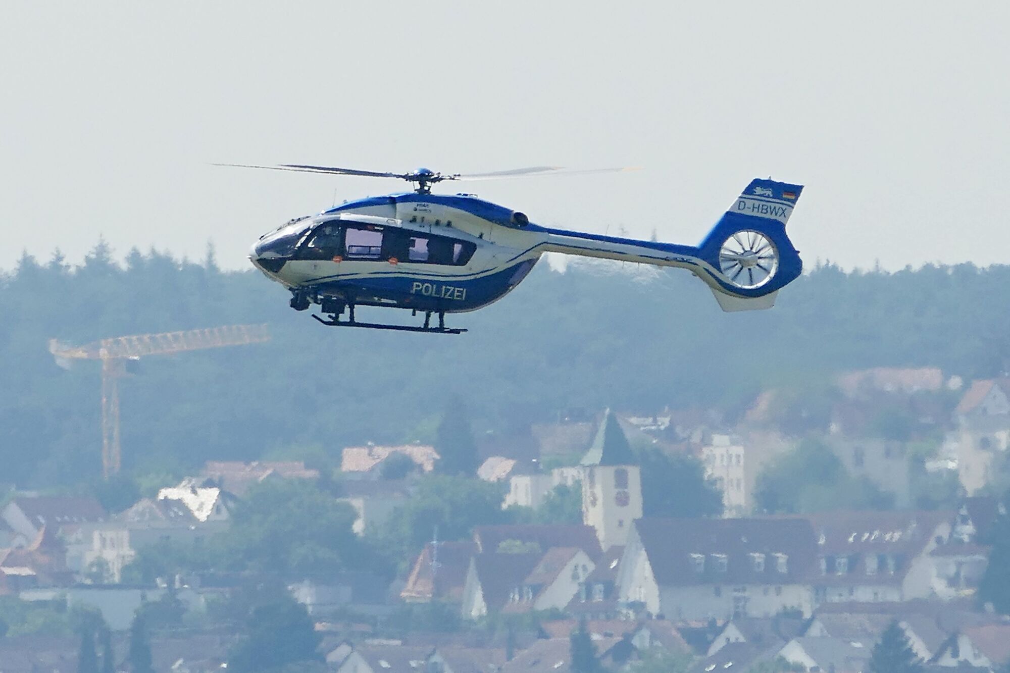Polizeihubschrauber und mehrere Streifenwagen in Schorndorf