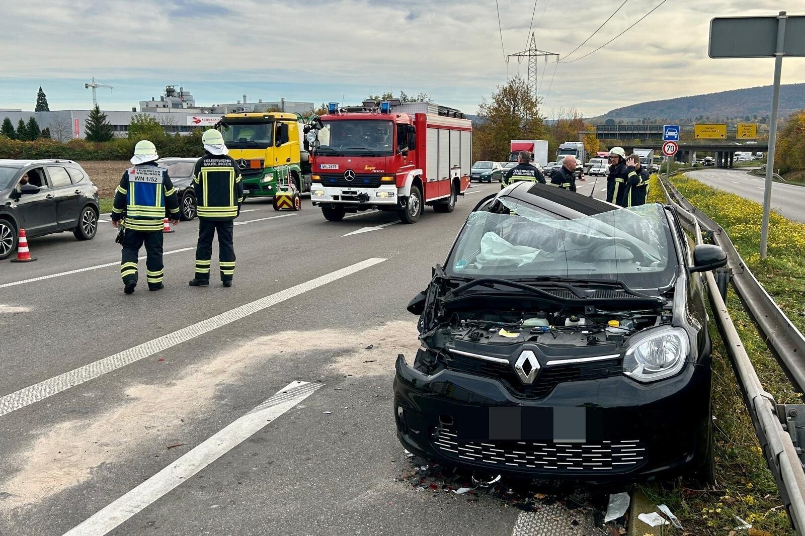 Ein 56-jähriger Renault-Fahrer befuhr die B14 und verließ diese an der Abfahrt Waiblingen-Süd. Kurz vor der Kreuzung Westumfahrung / Alte Bundesstraße / Schorndorfer Straße wechselte er auf die Linksabbiegespur in Richtung Fellbach. Dort fuhr er auf einen verkehrsbedingt