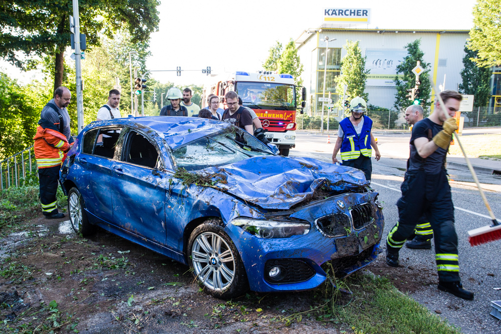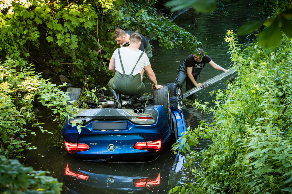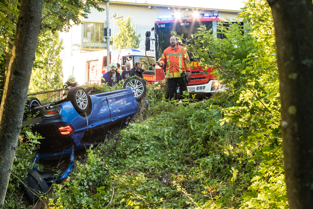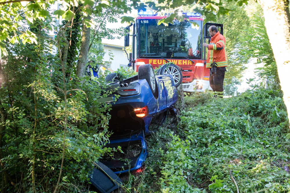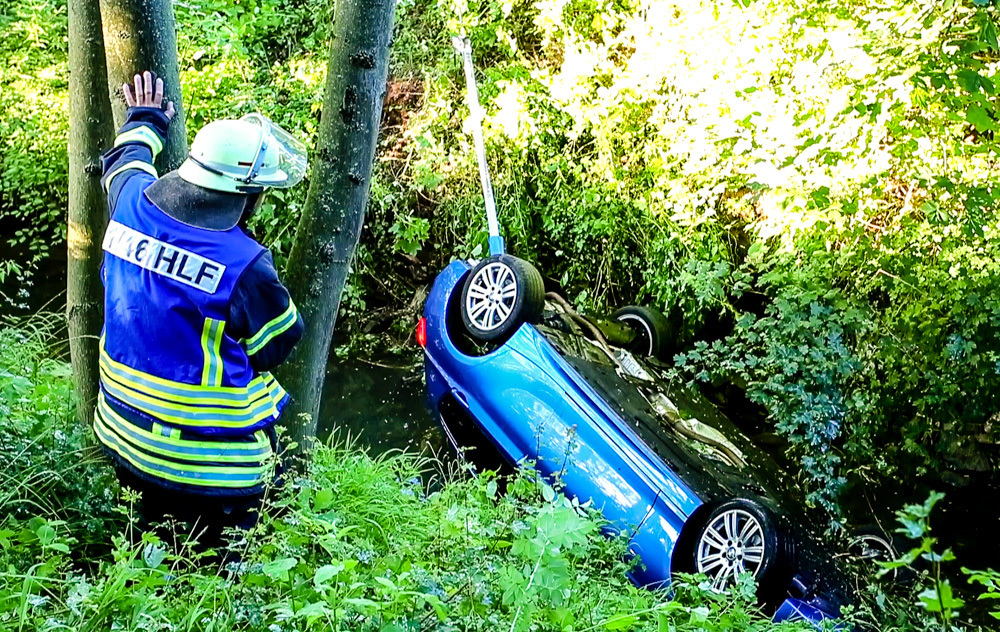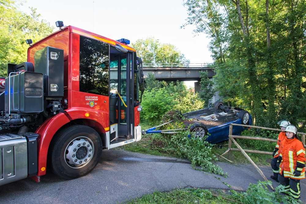 Dieser Unfall endete für einen 24-jährigen BMW-Fahrer glimpflich, obwohl sich sein Fahrzeug überschlagen hatte und auf dem Dach im Buchenbach liegen blieb. Der 24-Jährige war laut Polizei in alkoholisiertem Zustand am frühen Samstagmorgen (29.06.) in Winnenden von der Alfred-Kärcher-Straße in die Leutenbacher Straße abgebogen. Der Mann verlor die Kontrolle über sein Fahrzeug, durchbrach mit dem BMW einen Zaun und fuhr eine Böschung herunter, bis der Wagen schließlich auf dem Dach im Buchenbach zum Liegen kam. Der Fahrer konnte unverletzt selbstständig das Fahrzeug verlassen. Er musste laut Polizei eine Blutentnahme über sich ergehen lassen und seinen Führerschein abgeben. Die Feuerwehr Winnenden barg das Auto aus dem Bach. Am Fahrzeug entstand wirtschaftlicher Totalschaden in Höhe von circa 20.000 Euro.