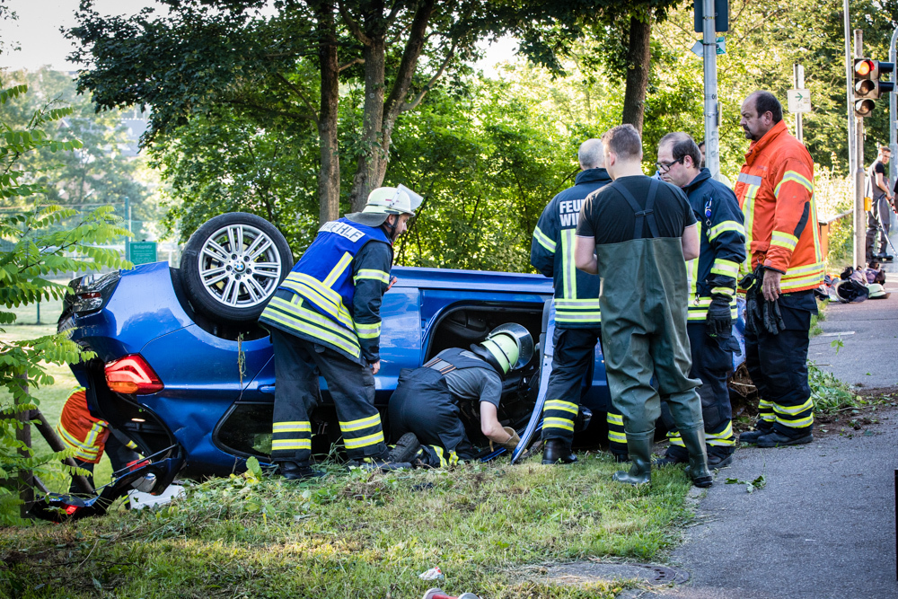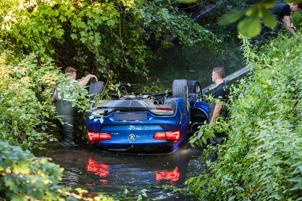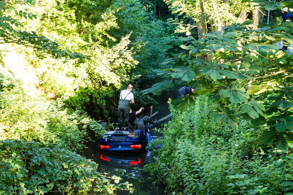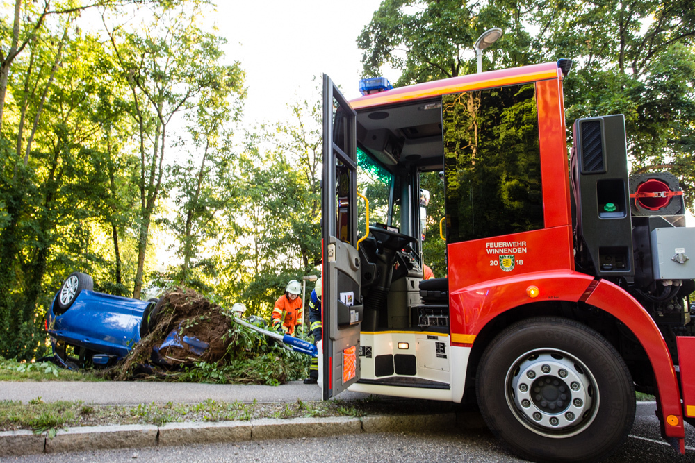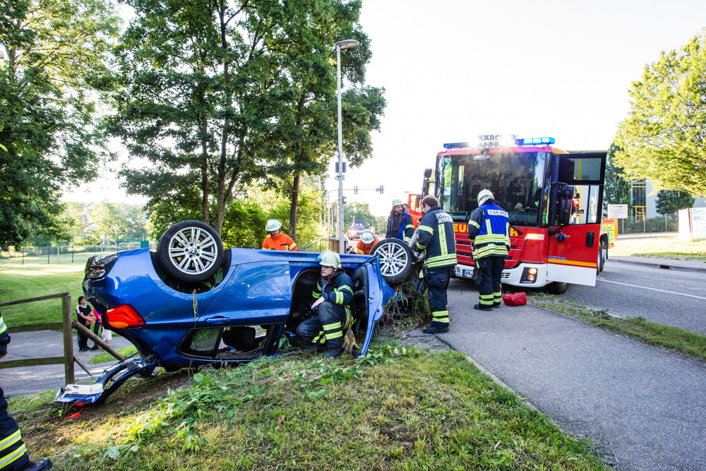 Dieser Unfall endete für einen 24-jährigen BMW-Fahrer glimpflich, obwohl sich sein Fahrzeug überschlagen hatte und auf dem Dach im Buchenbach liegen blieb. Der 24-Jährige war laut Polizei in alkoholisiertem Zustand am frühen Samstagmorgen (29.06.) in Winnenden von der Alfred-Kärcher-Straße in die Leutenbacher Straße abgebogen. Der Mann verlor die Kontrolle über sein Fahrzeug, durchbrach mit dem BMW einen Zaun und fuhr eine Böschung herunter, bis der Wagen schließlich auf dem Dach im Buchenbach zum Liegen kam. Der Fahrer konnte unverletzt selbstständig das Fahrzeug verlassen. Er musste laut Polizei eine Blutentnahme über sich ergehen lassen und seinen Führerschein abgeben. Die Feuerwehr Winnenden barg das Auto aus dem Bach. Am Fahrzeug entstand wirtschaftlicher Totalschaden in Höhe von circa 20.000 Euro.