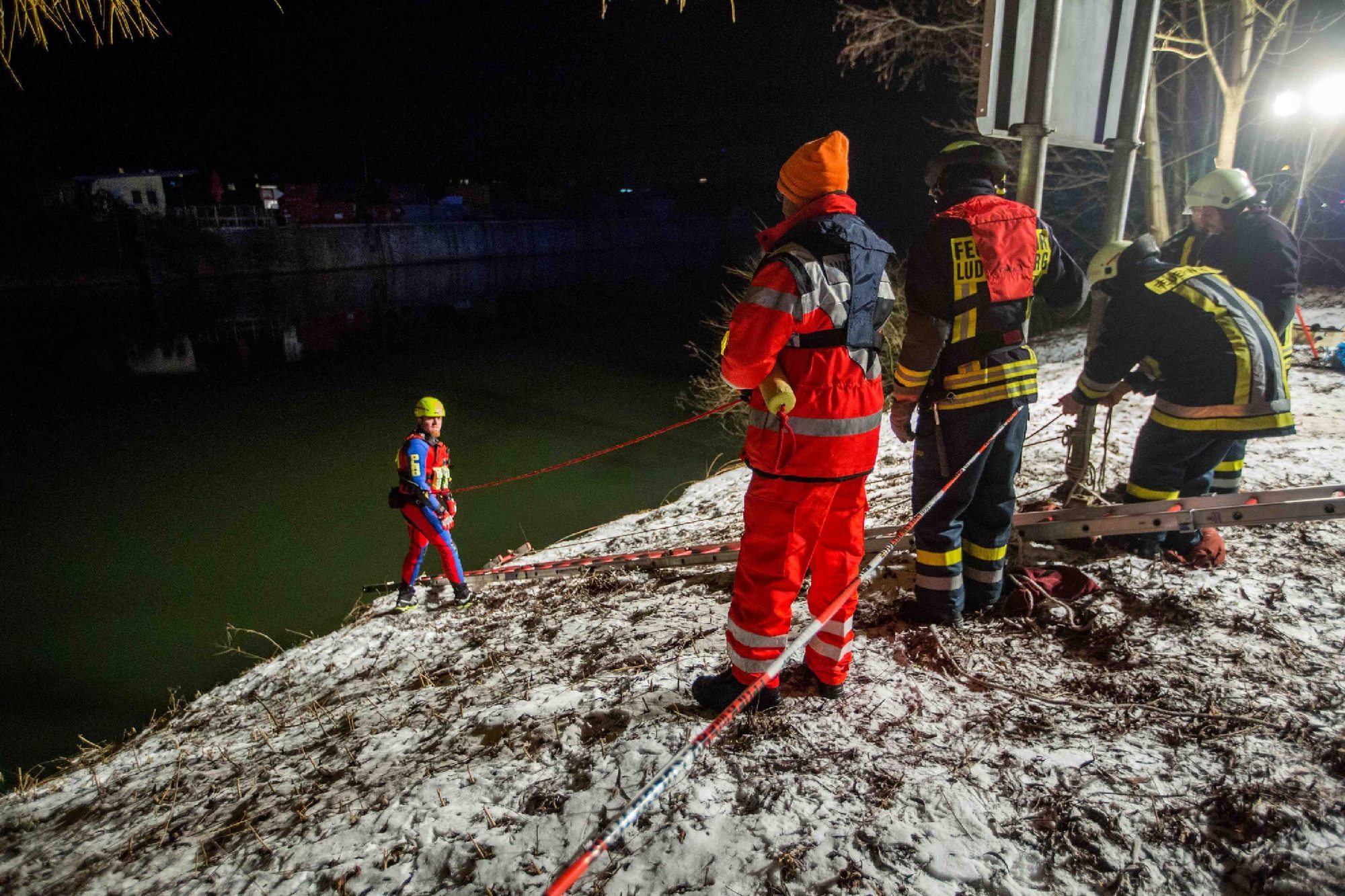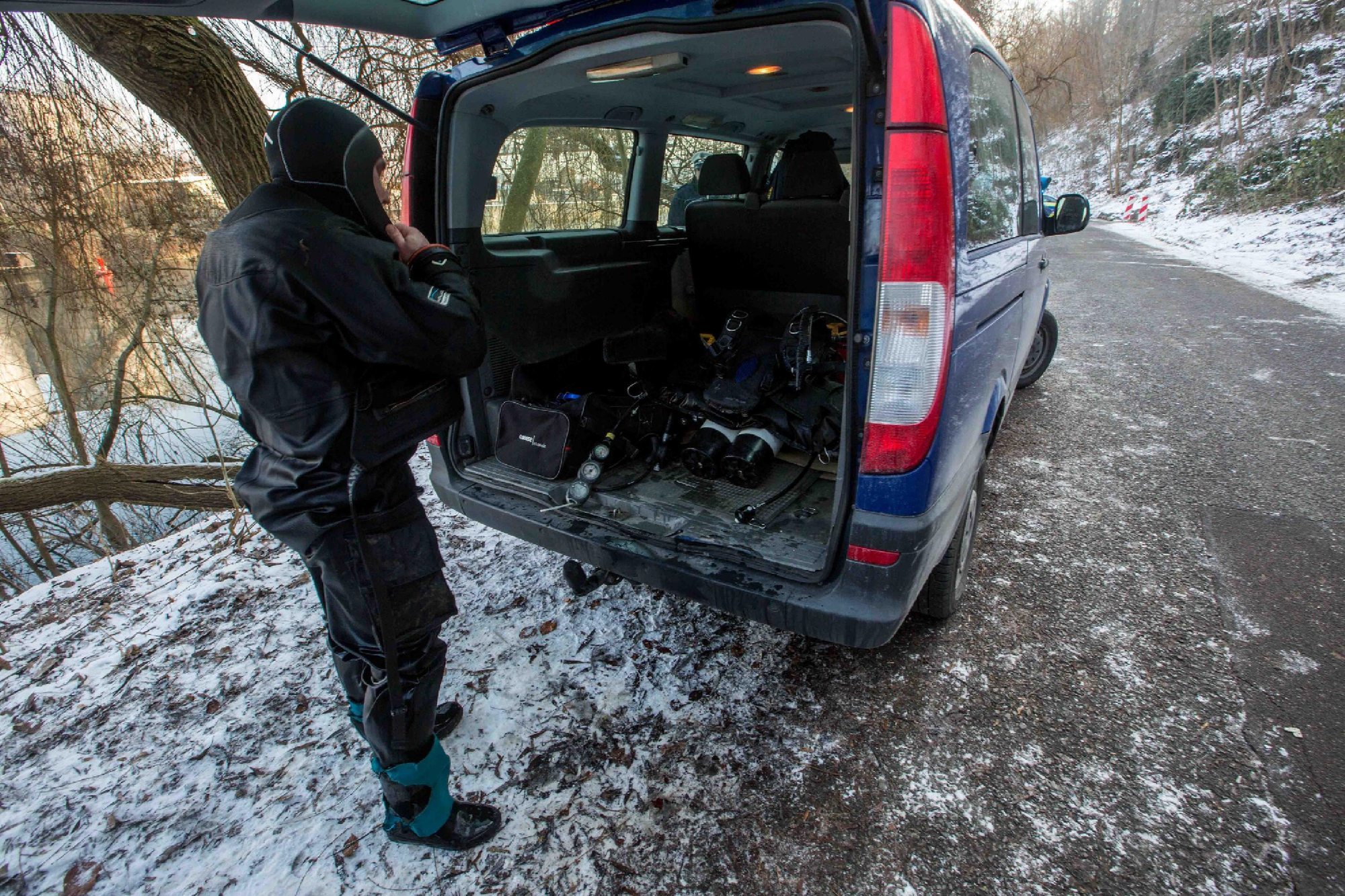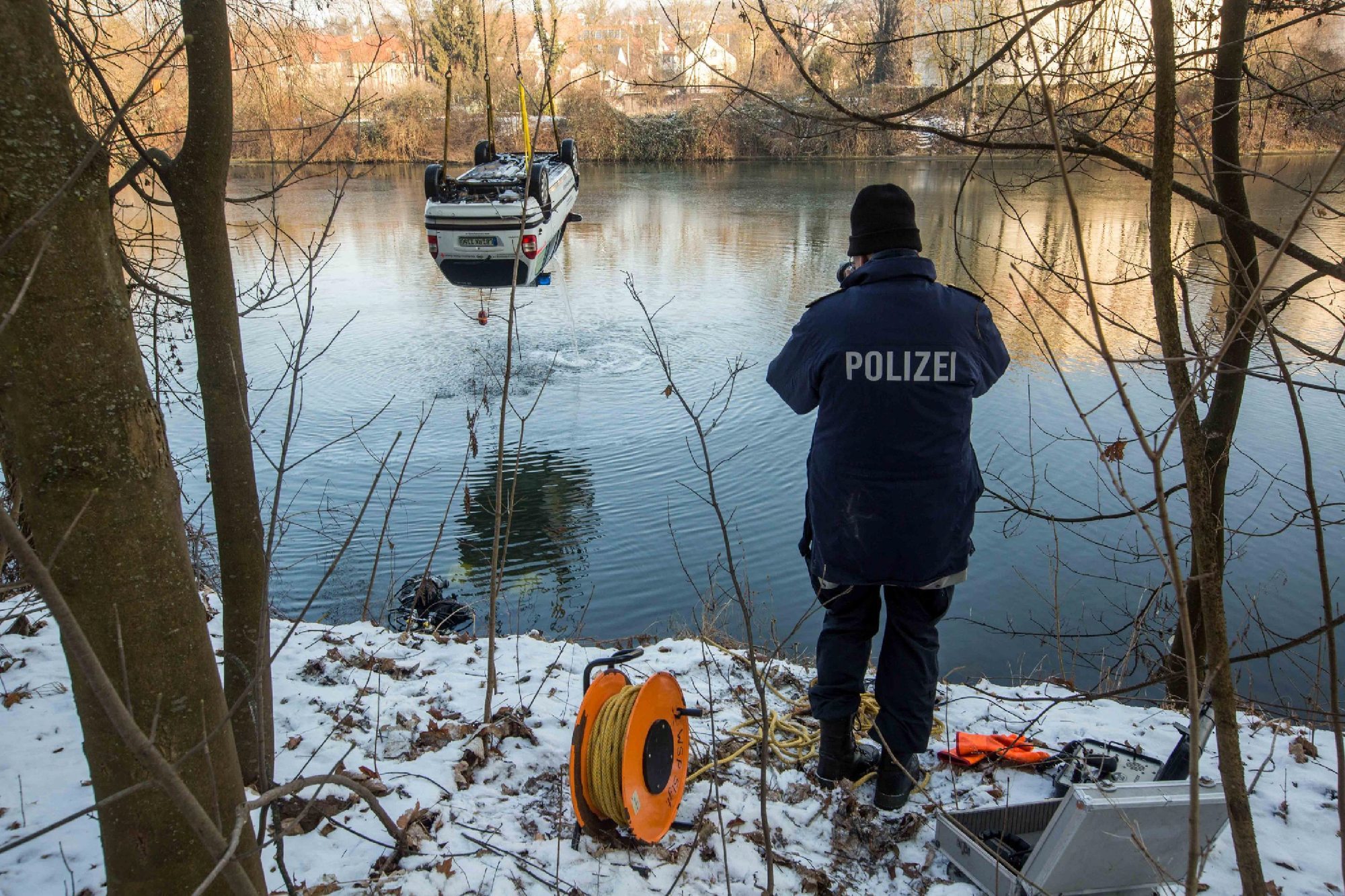 Laut dpa war das Auto in der Nacht zum Donnerstag (19.1.) während eines Einbruchs auf dem DRK-Gelände der Stadt gestohlen worden. Spuren im Schnee deuteten später darauf hin, dass es im Neckar versenkt wurde. Zwei Taucher suchten den Flussabschnitt ab und entdeckten den DRK-Wagen. Die Schifffahrt auf dem Neckar musste laut der Polizei bis zur Bergung eingestellt werden.