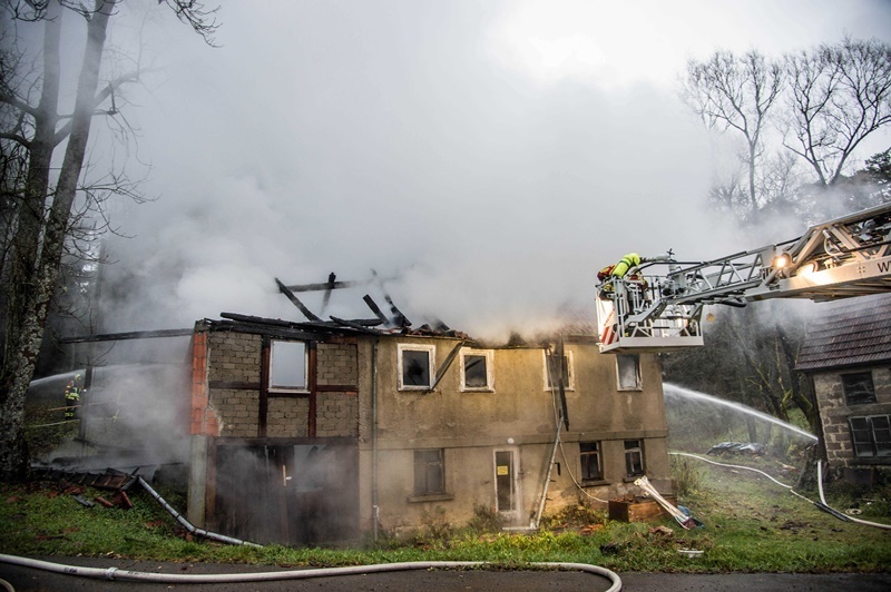 Ein leerstehendes, renovierungsbedürftiges Einfamilienhaus in Kaisersbach-Gehren ist abgebrannt. Der Brand ist am Sonntag (26.11.) gegen 7.30 Uhr ausgebrochen. Nach derzeitigem Ermittlungsstand der Polizei war der Besitzer des Hauses am Samstag mit Renovierungsarbeiten im Haus beschäftigt und hatte den Kamin angezündete. Deshalb ist laut Polizei zu vermuten, dass es im Bereich des Kamins zum Brandausbruch kam. Trotz des schnellen Einsatzes der Feuerwehren Kaisersbach und Welzheim, welche mit etwa sechs Fahrzeugen und 40 Mann im Einsatz waren, brannte das Gebäude komplett aus. Da dieses einsturzgefährdet ist, ist ein Abriss aus Gründen der Gefahrenabwehr offensichtlich unumgänglich. Der Schaden beläuft sich auf ca. 30.000 Euro. Personen kamen nicht zu Schaden.