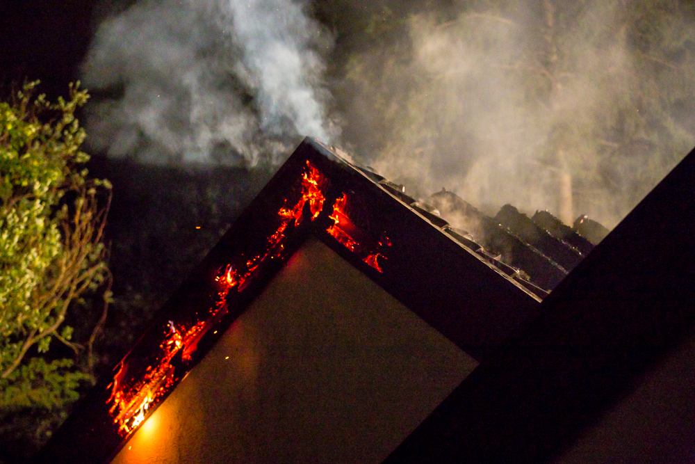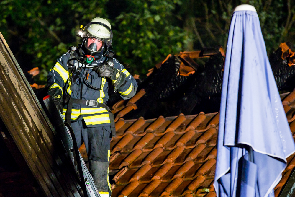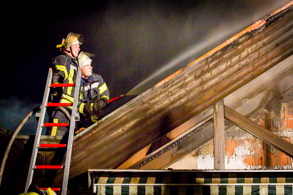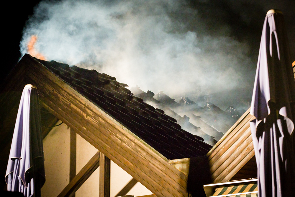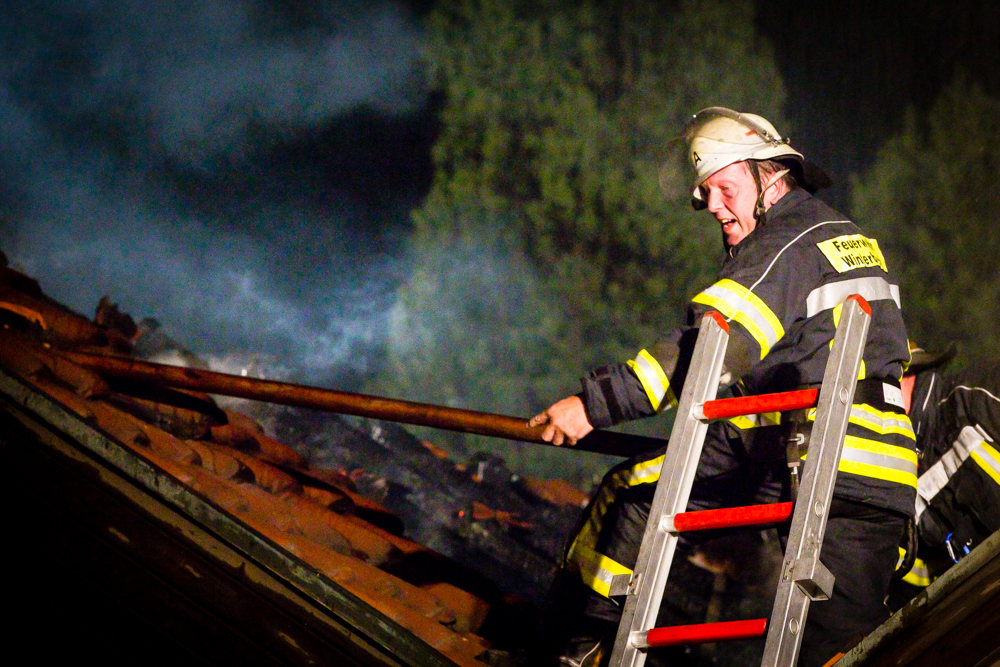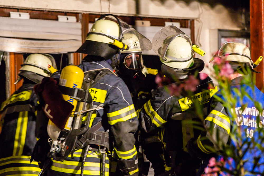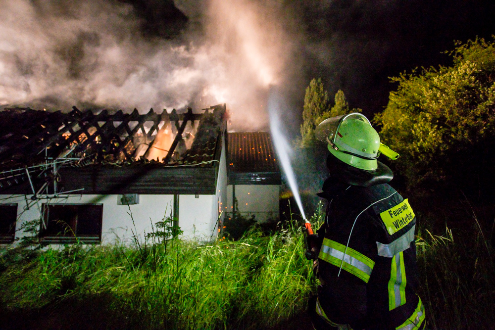 Der Schock sitzt am Sonntagvormittag noch tief bei den Mitgliedern des Tennisclubs Rot-Weiß Winterbach. Fassungslos stehen sie vor den Trümmern des Gebäudes, das von den Mitgliedern selbst erbaut und im Jahre 1984 eingeweiht wurde. Auf absehbare Zeit werden sie es nun nicht mehr nutzen können, was ein Mitglied lakonisch mit „alles selbst gemacht, alles dahin“ kommentiert. Verkohlte Balken und kaputte Dachlatten liegen vor dem Eingang. Mehrere Fenster sind mit Sperrholzplatten provisorisch verriegelt, ein Feuerlöscher auf dem Boden kündet noch von dem Versuch des Wirts, Schlimmeres zu verhindern.