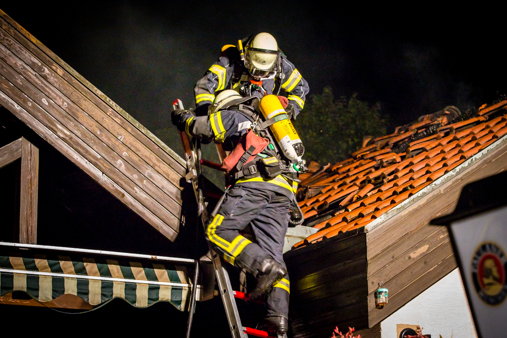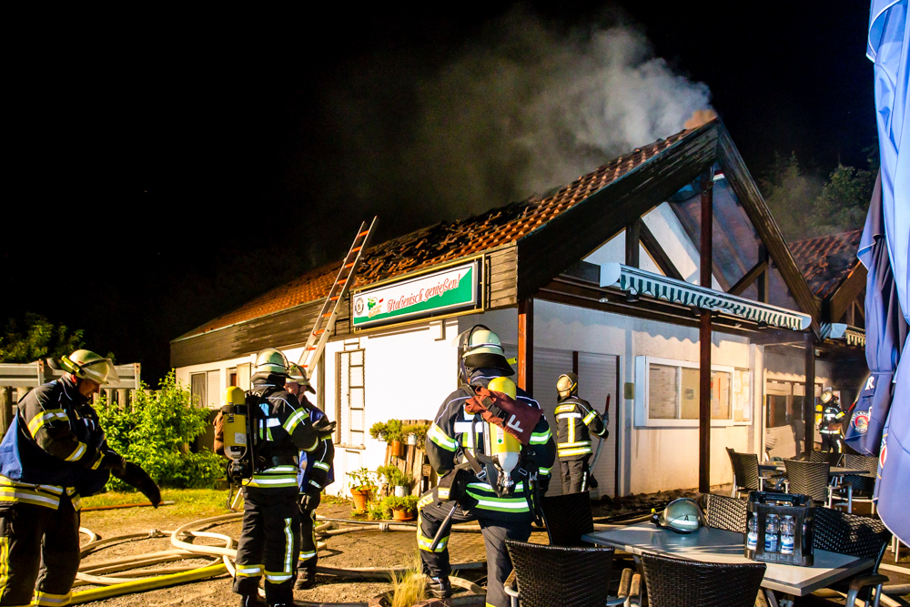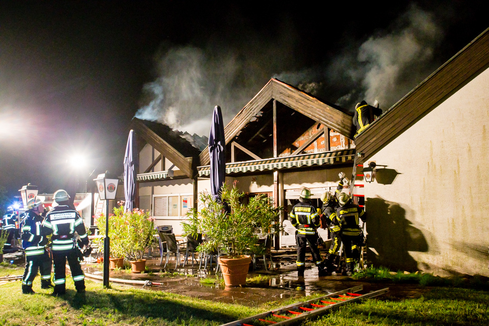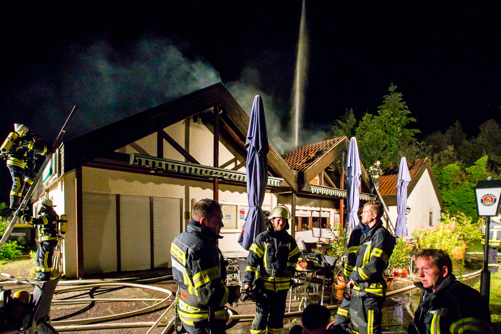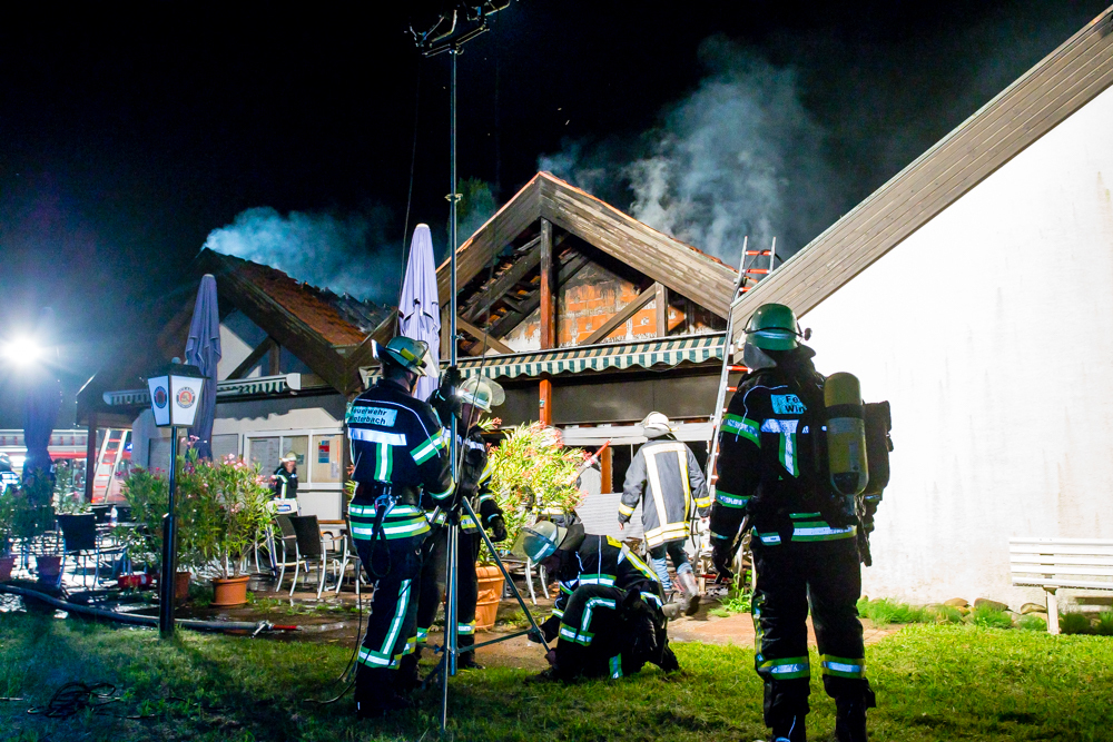 Mit diesem war Ciro Salvemini am Samstagabend gegen 22.25 Uhr in die Umkleidekabinen gelaufen. Kurz zuvor hatte er von dort einen Schlag gehört und anschließend war schwarzer Rauch in die Restaurant-Räume gedrungen. Die letzten Gäste hatte der Wirt da schon verabschiedet. Zusammen mit seiner Frau Katja waren sie am Aufräumen, als das Feuer ausbrach. Doch mit dem Feuerlöscher konnte er dem Brand nicht mehr viel entgegensetzen. Den Löschversuch brach er, um sich selbst zu schützen, schnell wieder ab.