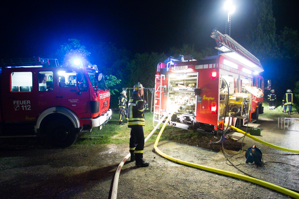 Winterbach. Am Samstagabend musste die Winterbacher Feuerwehr zu einem Großeinsatz am Rotenbergweg ausrücken. Aus noch unbekannter Ursache war kurz vor halb elf im Vereisheim des Tennisclubs Feuer ausgebrochen. Bis in die frühen Morgenstunden waren die Einsatzkräfte vor Ort. Der Sachschaden beläuft sich ersten Schätzungen zufolge auf bis zu 400 000 Euro. Verletzt wurde bei dem Brand zum Glück niemand.