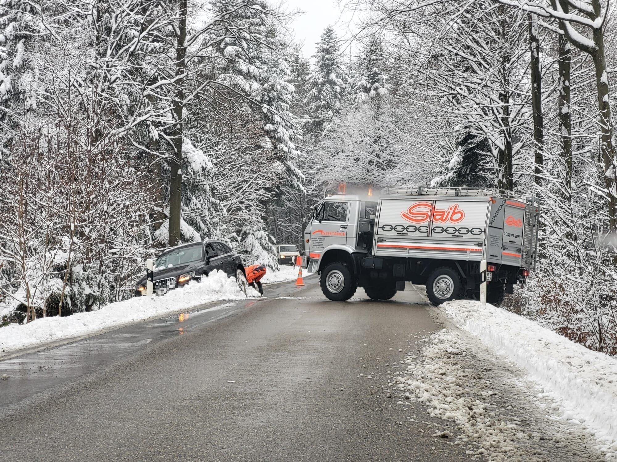 Rems-Murr-Kreis. Aufgrund des starken Schneefalls hat es zahlreiche Verkehrsunfälle gegeben. Für den Rems-Murr-Kreis allein vermeldete die Polizei Aalen bis zum Montagnachmittag (26.01.), 15 Uhr, 61 Unfälle. Der Schaden beläuft sich insgesamt auf 375.000 Euro. Verletzt wurde dabei nur eine Person.