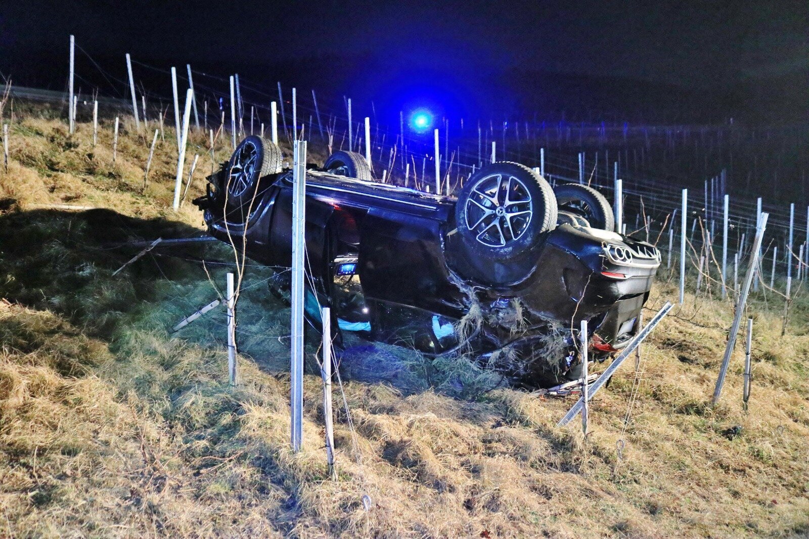 Er überschlug sich neben der Fahrbahn und kam auf dem Dach zum Liegen. Am Auto entstand ein Totalschaden, die Schadenshöhe beläuft sich auf rund