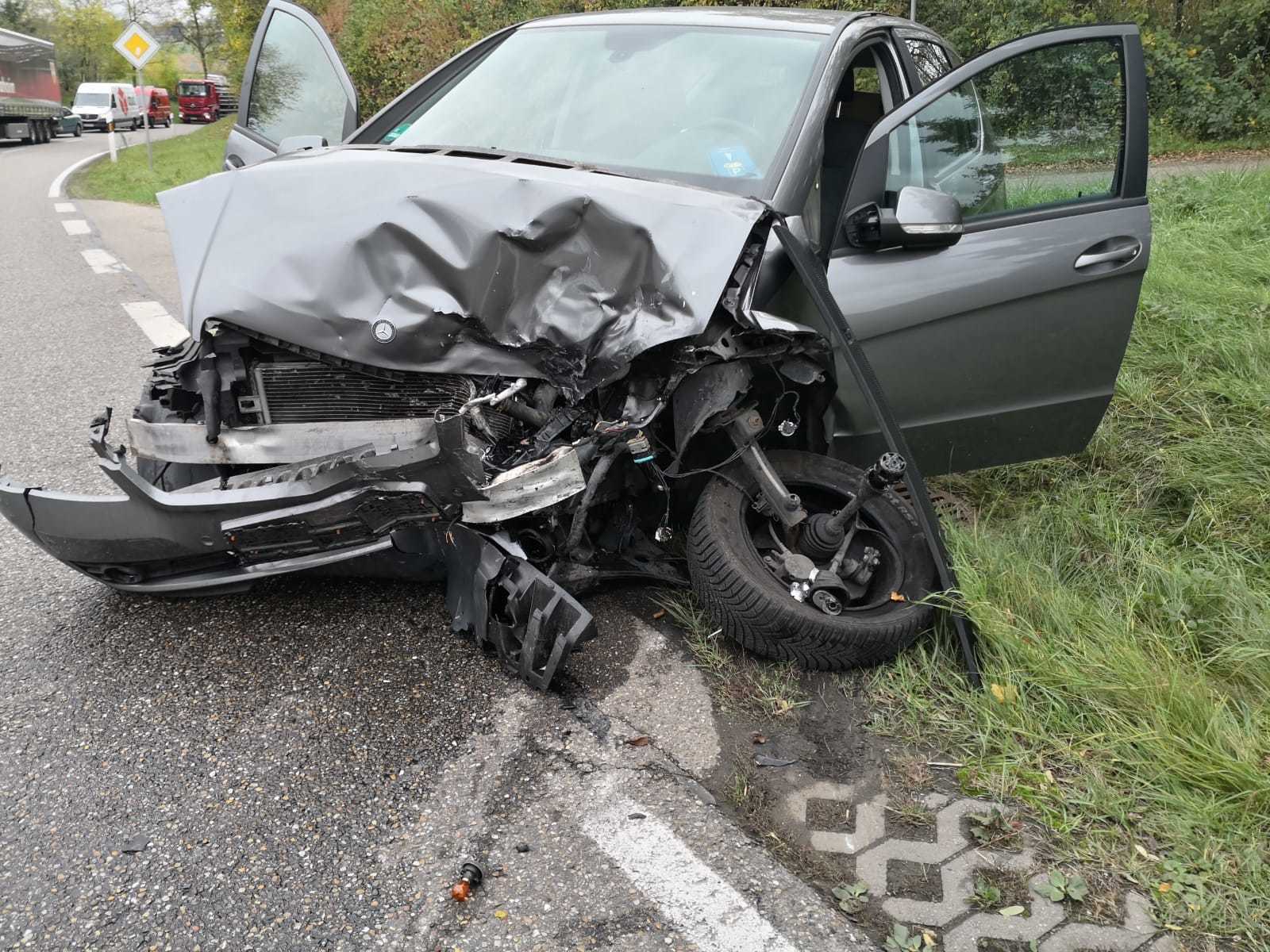 Eine 78-Jährige war auf der Straße nach Oeffingen in einer Rechtskurve von der Fahrbahn abgekommen. Ihr Mercedes prallte frontal in den Mercedes einer entgegenkommenden 42-Jährigen. Die 78-Jährige wurde bei dem Unfall schwer verletzt. Die 42-Jährige wurde leicht verletzt, ihre beiden Kinder (sieben und elf Jahre) blieben glücklicherweise unverletzt. Beide Autos mussten mit Totalschaden abgeschleppt werden.