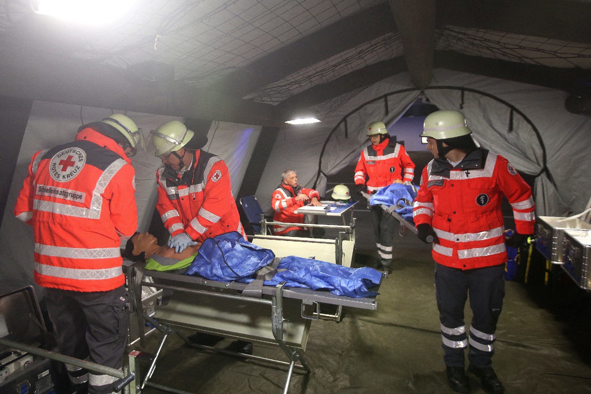 Mindestens einmal im Monat probt die Gruppe um Carsten Magunia den Ernstfall, von dem alle hoffen, dass er niemals eintritt. Von Unwettern und Hochwasser über Erdbeben, Unfälle und Großbrände bis zum terroristischen Anschlag reichen die denkbaren Szenarien.