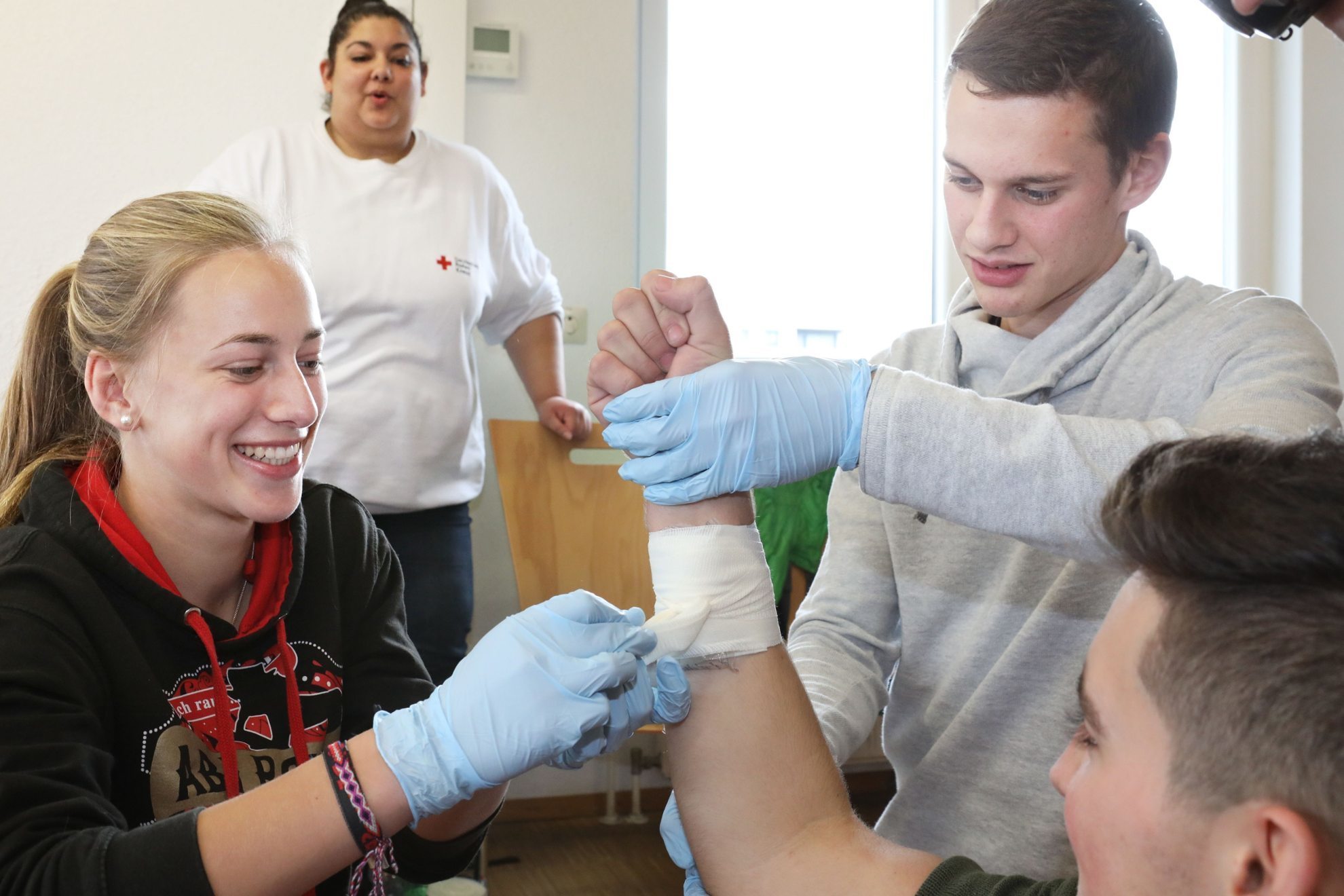 Seit einigen Jahren bietet das Rote Kreuz im DRK-Haus im Gewerbegebiet Eisental einen „Kurs für alle“. Dazu wurde der bisherige Grundkurs mit 16 Unterrichtseinheiten auf neun Unterrichtseinheiten verkürzt. Immer noch genug, um den Teilnehmern in zahlreichen Übungen die Grundlagen näherzubringen. Auf Teilnehmer aus Betrieben kommen dabei keinerlei Kosten zu. Die Kursgebühren werden laut Sina Löhle in der Regel von der zuständigen Berufsgenossenschaft übernommen.