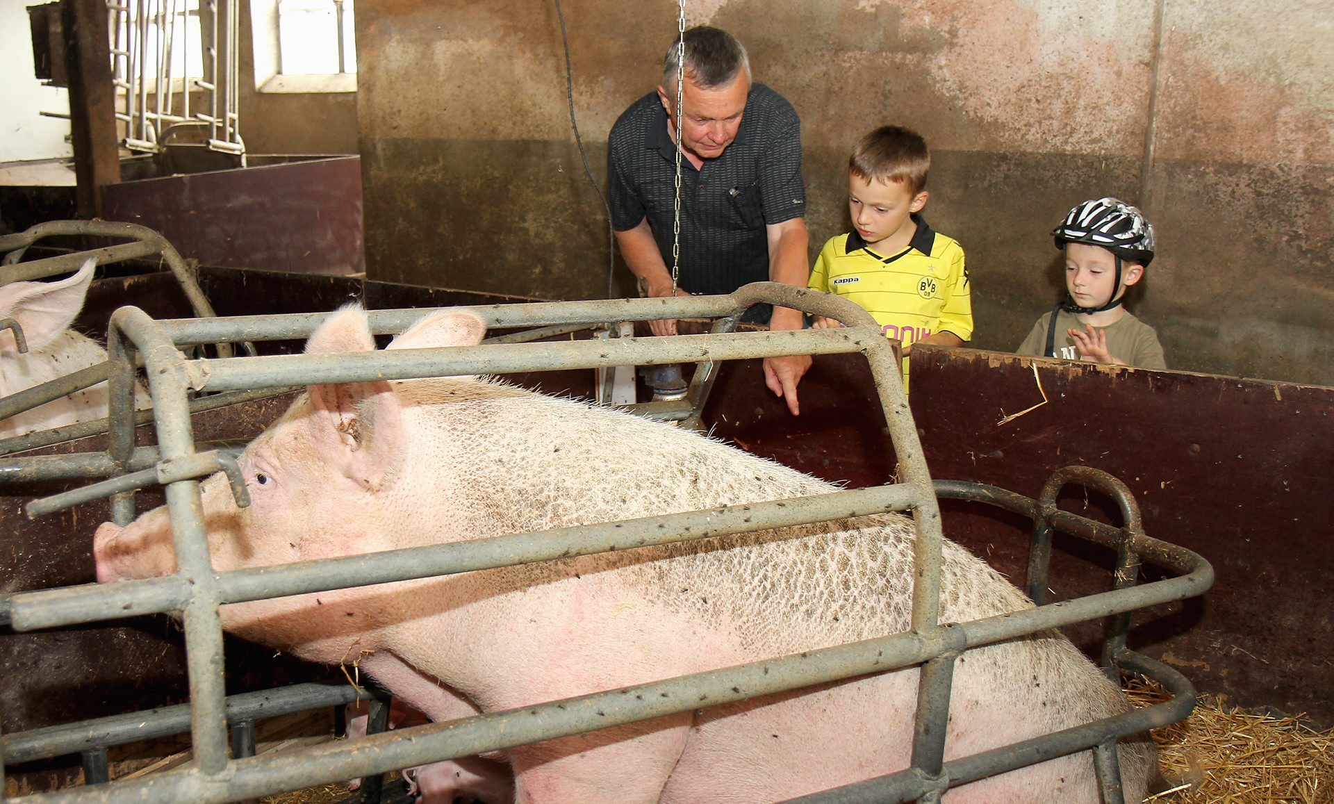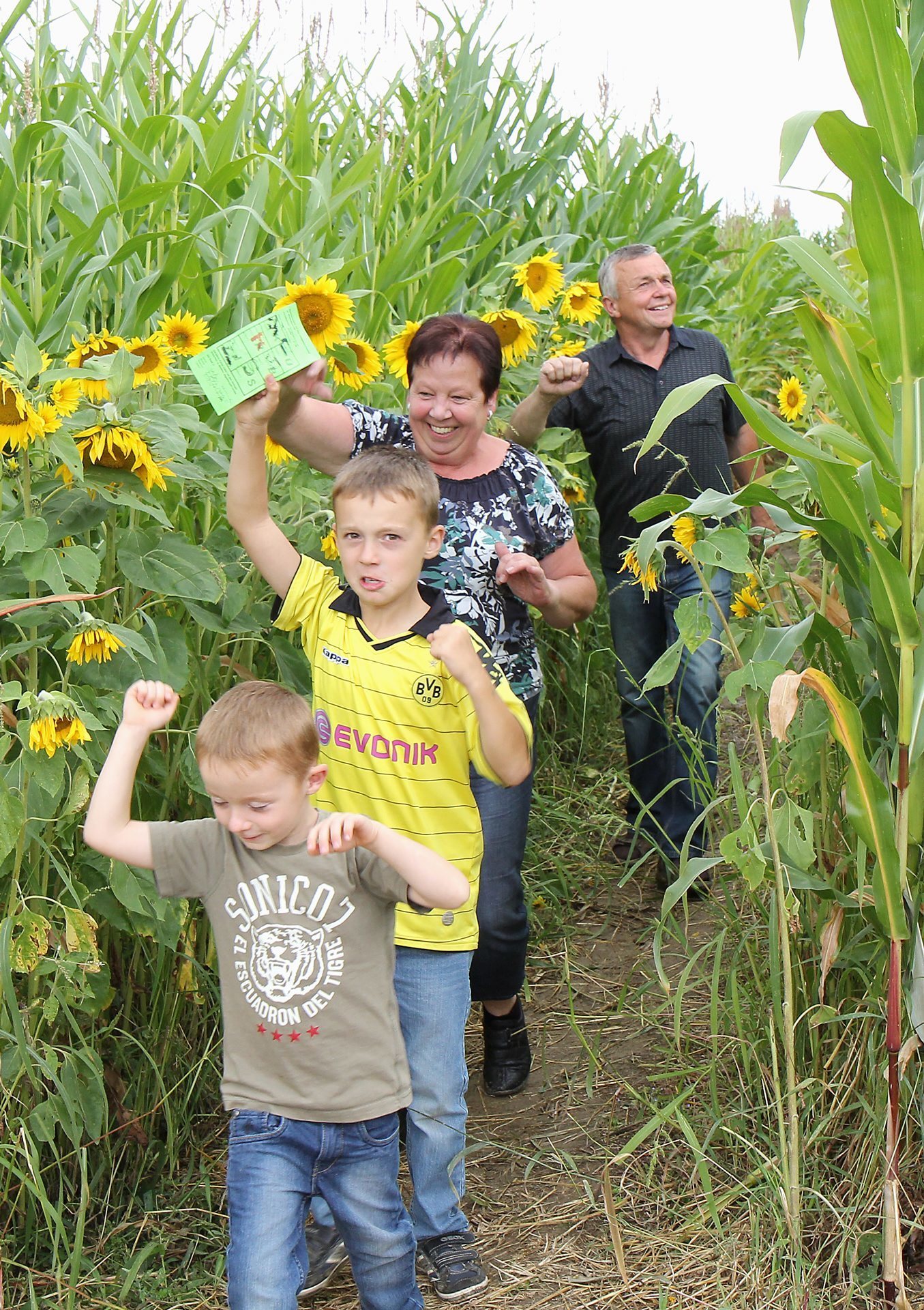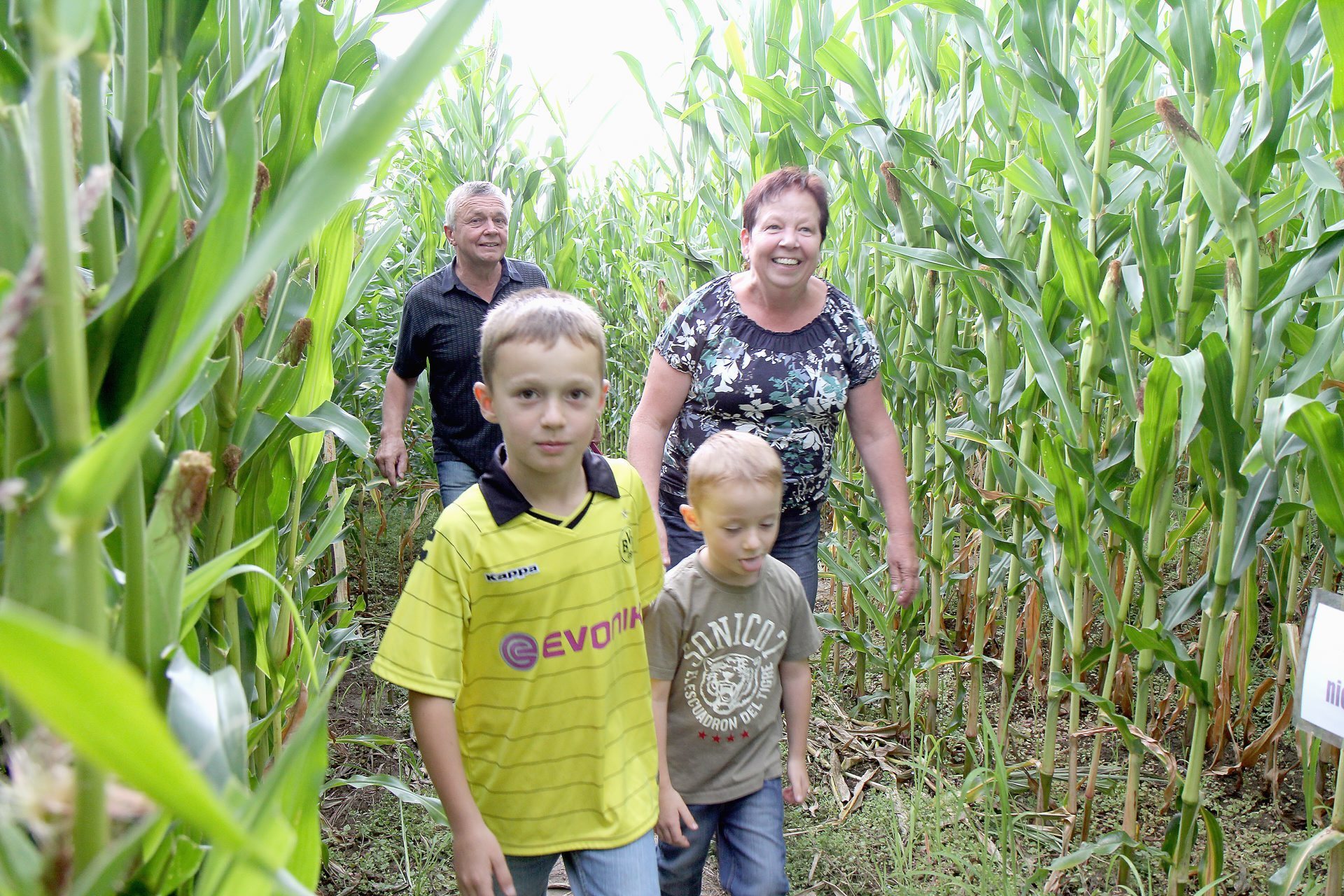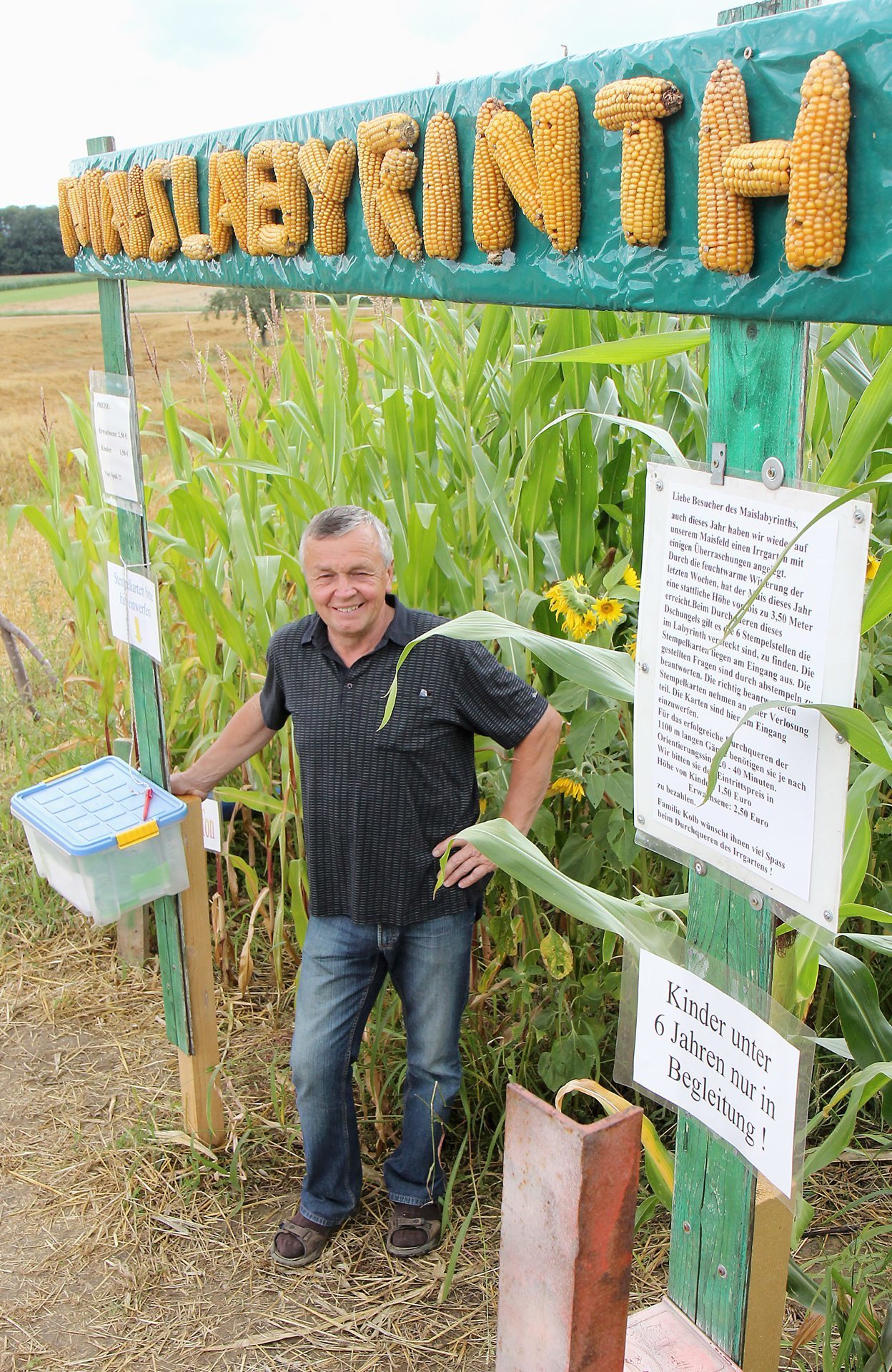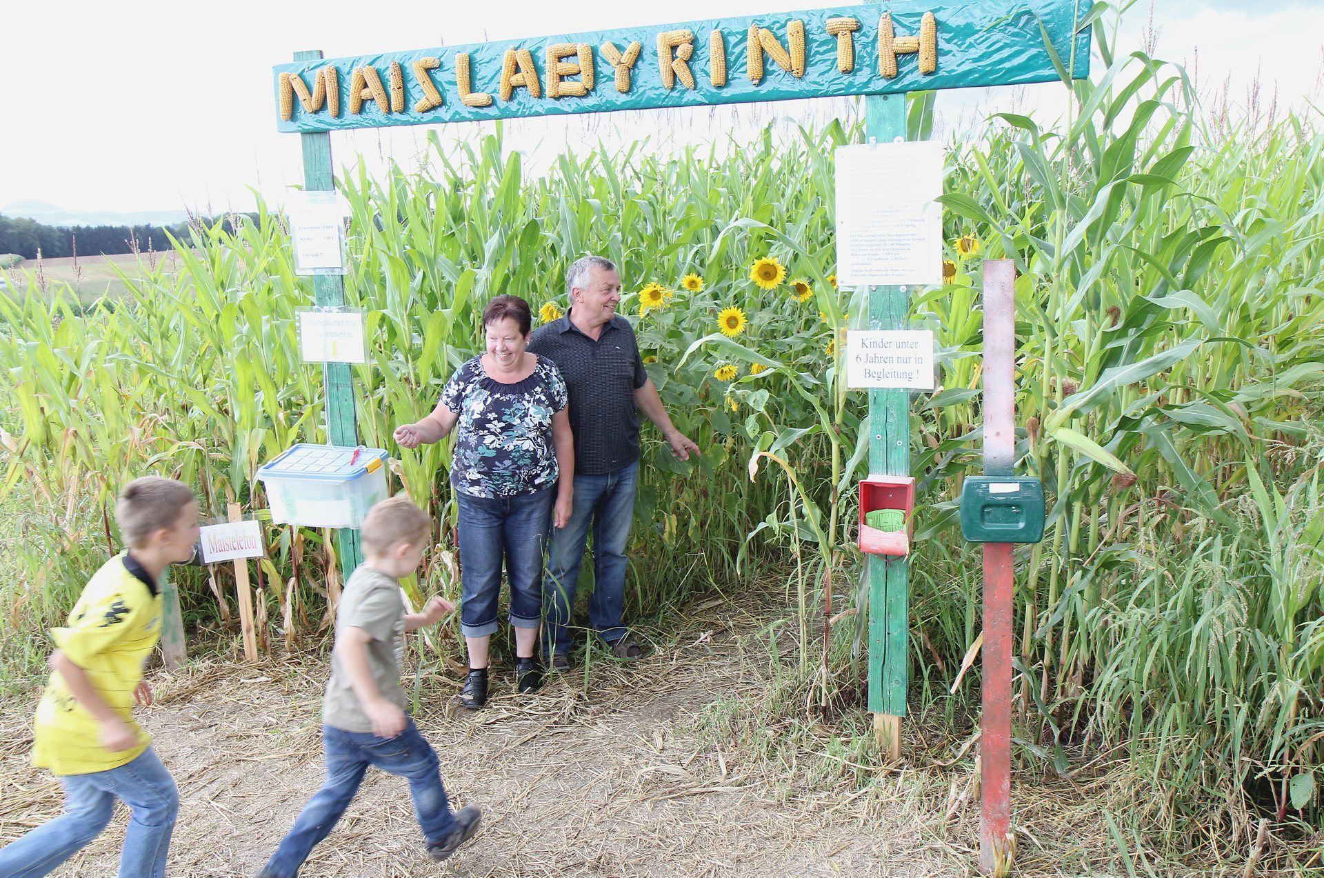 Ab Anfang August seien die Pflanzen dann in der Regel hoch genug, um den Irrgarten zu eröffnen, erklärt Günther Kolb. Bereits zum sechzehnten Mal irren dieses Jahr kleine und große Besucher durchs Labyrinth, für das man etwa 45 Minuten Zeit einplanen sollte. „Verloren gegangen ist eigentlich noch niemand, nur einmal hat sich ein kleines Mädchen in den verwinkelten Gängen aus Versehen an eine fremde, statt an seine eigene Familie gehängt und kam so erst nach einiger Zeit wieder raus“, so Kolb. – Das Labyrinth besteht in der Regel bis Ende September, anschließend wird der Mais gedroschen und an die hofeigenen Schweine verfüttert. Auch die sind für viele der kleinen Besucher des Irrgartens eine Attraktion und dürfen gerne aus der Nähe bestaunt werden.