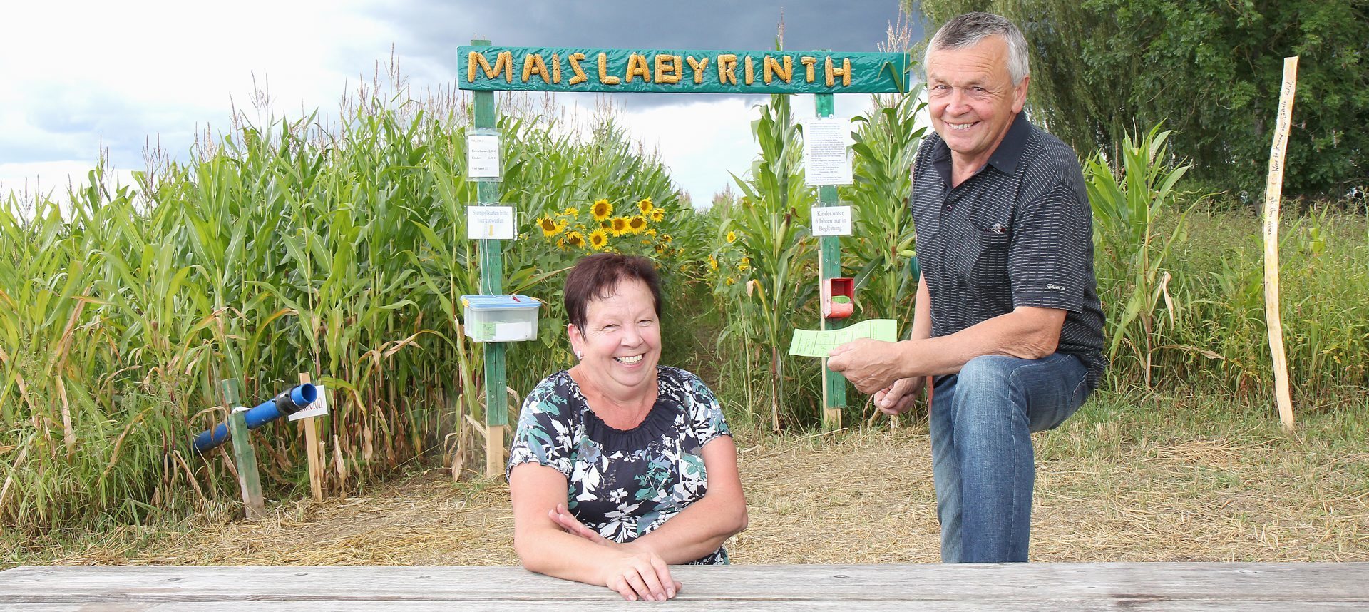 Bis zu drei Meter ragen die höchsten Maispflanzen im liebevoll angelegten Labyrinth in die Luft, so dass sich selbst Hochgewachsene keinen Überblick verschaffen können. Wer sich in das Labyrinth hineinwagt, stößt auf diverse Überraschungen, wie etwa eine Sonnenblumenallee und insgesamt sechs Stempelstellen, an denen Günther Kolb Quizfragen für die Abenteurer vorbereitet hat. Für die Quizfragen bekommt man am Eingang des Labyrinths einen Zettel, auf dem man dann an jeder der sechs Stellen die vermeintlich richtige Antwort abstempeln kann. Am Ausgang kann man seine Karte dann mit Name und Adresse versehen und in eine Box werfen, aus welcher dann in regelmäßigen Abständen der Gewinner einer kleinen Überraschung ausgelost wird.