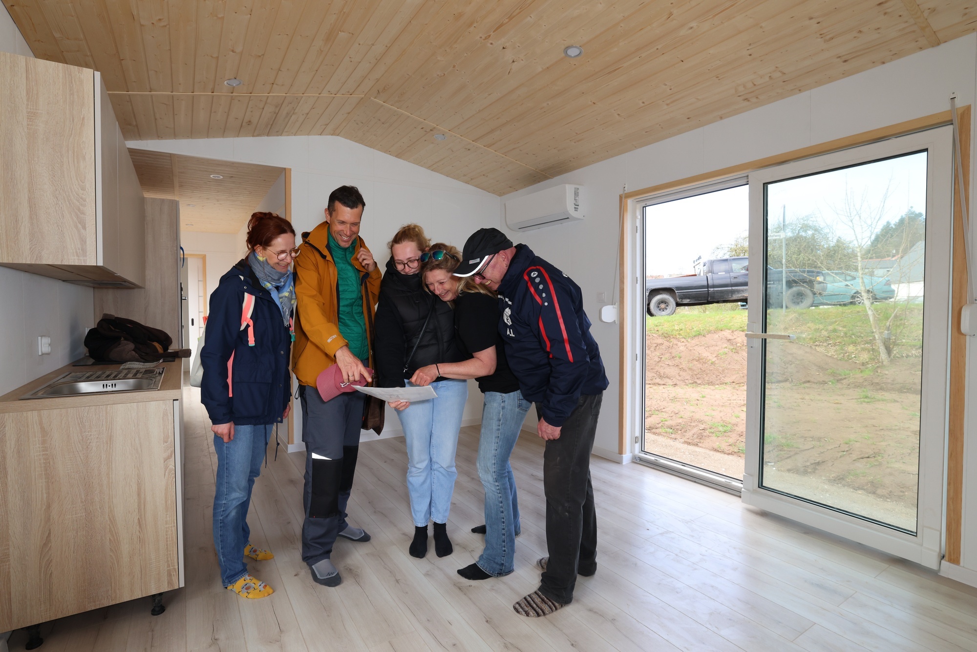 Alfdorf-Hellershof. „Elke, dein Haus fliegt!“ Die Nachbarin stupst Elke Widmann in die Seite und grinst. Und die - ist echt erleichtert. Endlich ist es so weit, endlich kann sie sich als stolze Eigenheim-Bewohnerin bezeichnen. Genau wie ihr baldiger Grundstücksnachbar Armin Ihle, dessen Haus hier ebenfalls gleich landet. Wortwörtlich, denn die Häuser der beiden sind kleine, vier mal elf beziehungsweise vier mal zwölf Meter große und rund 13,5 Tonnen schwere Mobilheime, die