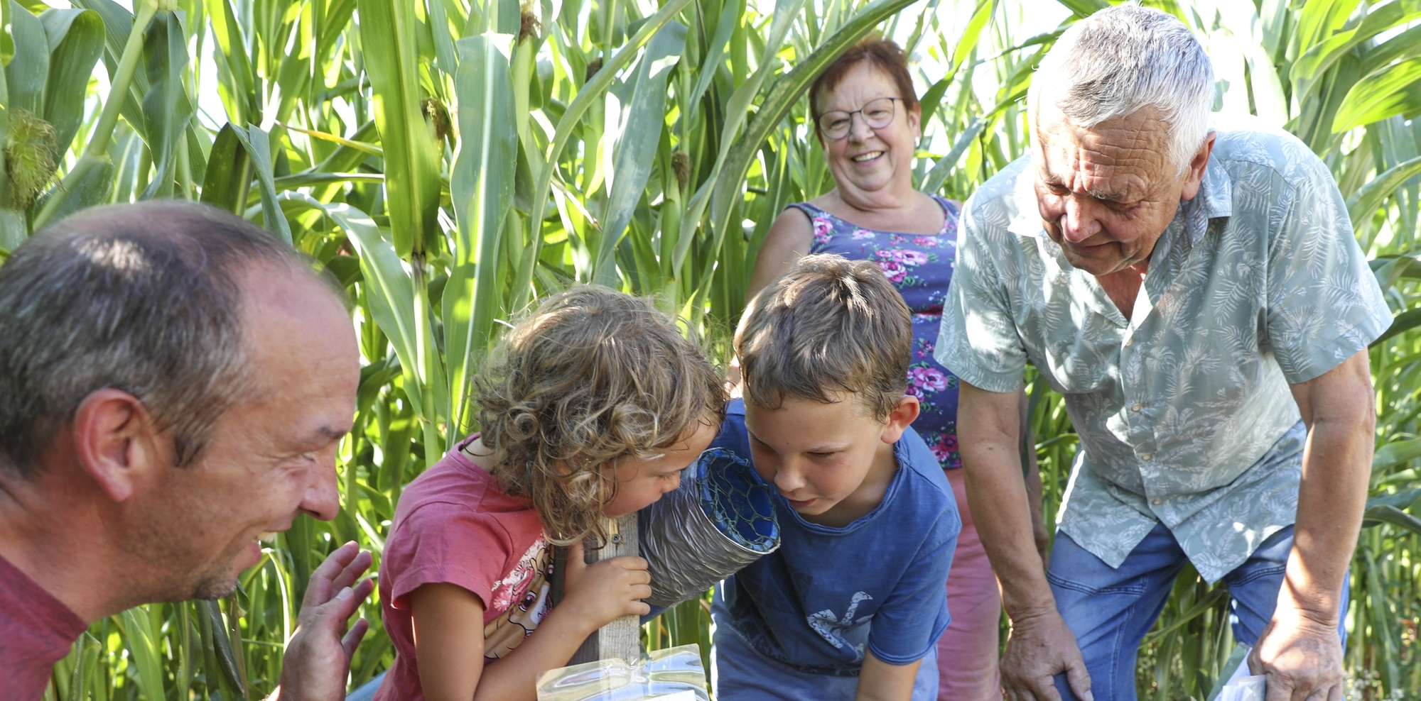 „Hallo – ist da wer?“, fragt Moritz mit leuchtenden Kinderaugen, wenn er an einem der beiden Maistelefon-Anschlüsse neugierig auf eine Antwort hofft. Meistens nimmt wirklich jemand ab, denn hier ist eine Menge los: im Maislabyrinth von Familie Kolb aus Alfdorf-Bonholz.
