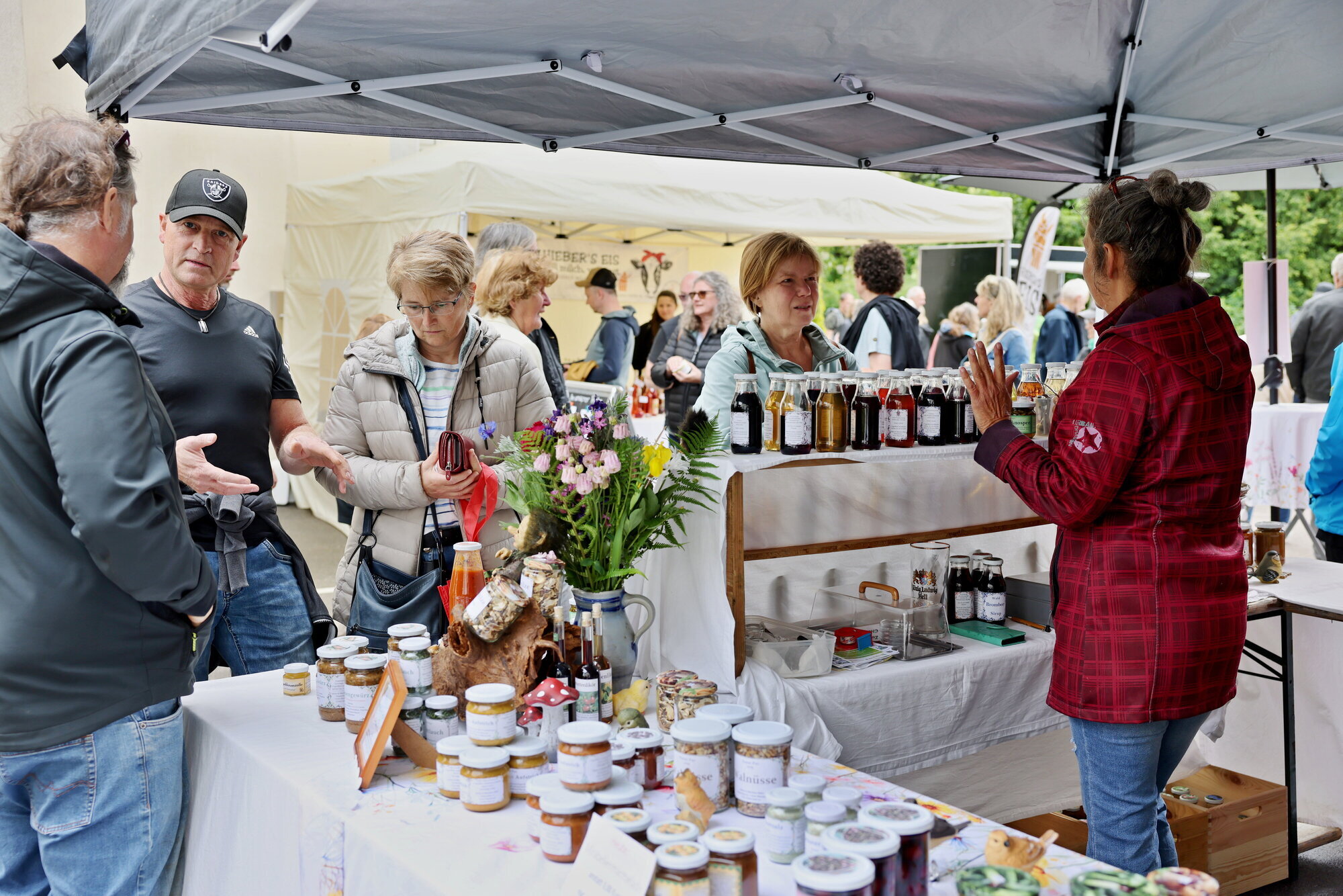 Alfdorf. Das Wetter zuerst regnerisch, dann etwas sonniger, die Angebote abwechslungsreich und reichhaltig sowie vor allem regional. Der 80. Naturparkmarkt überhaupt und der zweite in diesem Jahr fand am Sonntag (25.05.), umrahmt vom idyllischen Schlosspark, in Alfdorf statt. Das Einkaufserlebnis der anderen Art im Schwäbisch-Fränkischen Wald erfreut sich seit Jahren steigender Beliebtheit. Am Sonntag waren dazu rund 40 Stände aufgebaut worden.