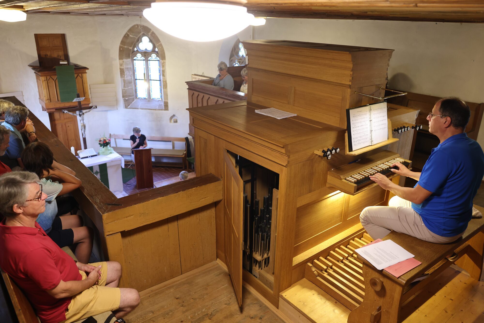 Was für ein Schmuckstück! Hell schimmert der mit weißem Holz verkleidete Turm der St.-Barbara-Kirche in Alfdorf-Rienharz an diesem Sonntagabend im untergehenden Sonnenlicht. Hoch oben leuchtet der Turmhahn. Erbaut im Jahre 1476, ist dieses Kirchlein das älteste Gotteshaus im Welzheimer Wald. In zwei Jahren hätte es dann stolze 550 Jahre auf dem Buckel. Wenn denn sein Buckel bis dahin durchhält.