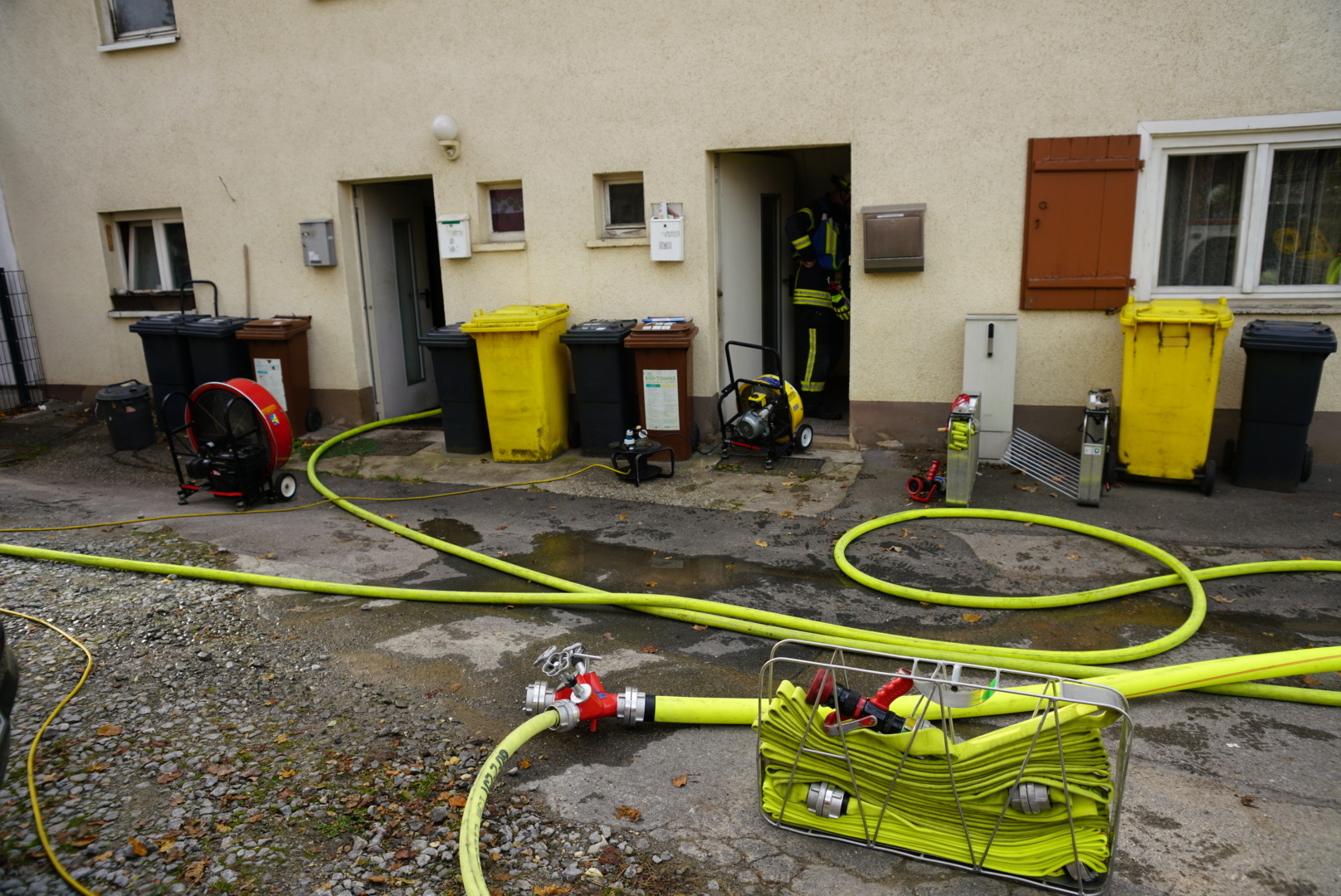 Die Alfdorfer Feuerwehr war schnell zur Stelle und konnte Schlimmeres verhindern, als an einem Sonntagvormittag im November 2019 zu einem Brand in einer Gemeindewohnung im Klösterlesweg  gerufen wurde. © SDMG