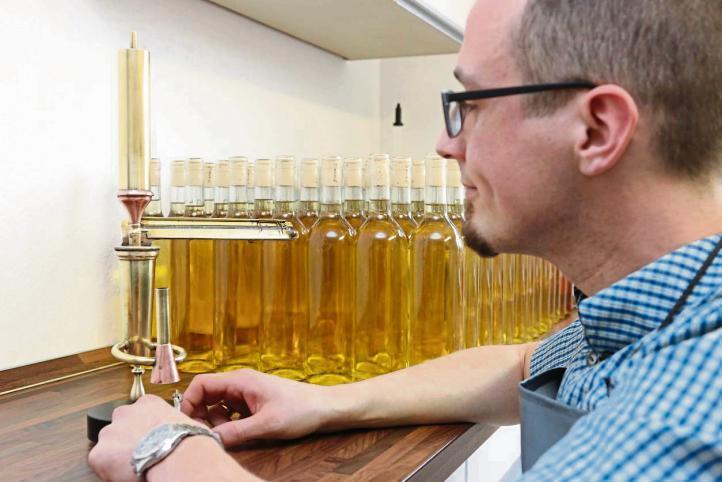 Denn er sei extrem selbstkritisch, es sei schwer, dass er seinen eigenen Ansprüchen gerecht werden könne, sagt er über sich. „Beim Wein ist das anders.“ Mit seinem Wein ist er meistens sehr zufrieden. Streng nach Rezept müsse er nicht mehr vorgehen. Das habe er mittlerweile raus. Die Weinherstellung habe viel mit Chemie und Physik zu tun, und natürlich Leidenschaft und auch mit Durst auf gute Tropfen. Dabei mag der 34-Jährige auch gutes Bier. „Ich bin wohl der einzige Weinmacher, der während des Weinmachens ein Bier trinkt“, sagt er.