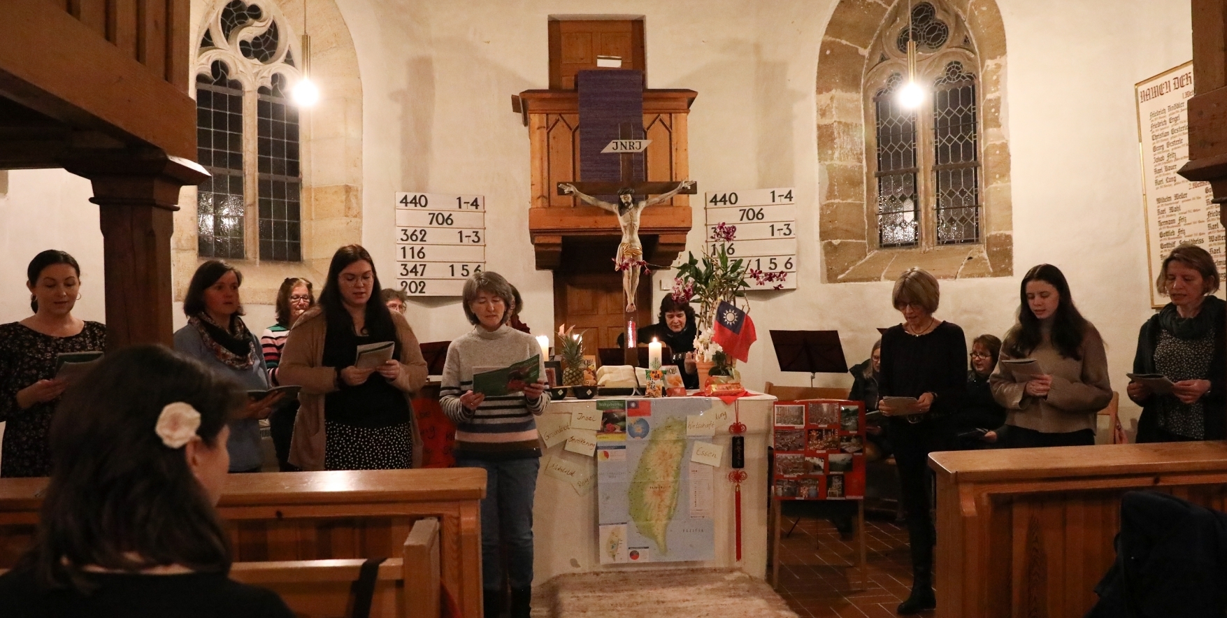 Festlich ist der St.-Barbara-Kirchen-Altar in Rienharz mit echten Ananasfrüchten geschmückt und eine Inselkarte, nebst taiwanesischen Fahnen, vermittelt den Gottesdienstbesuchern einen Hauch von Südseefeeling. „Glaube bewegt“ – so lautet der offizielle deutsche Titel des Weltgebetstages 2023, der dieses Jahr ganz auf den asiatischen Inselstaat Taiwan ausgerichtet stattfand. Offiziell wird der Weltgebetstag zwar schon am 3. März gefeiert, in Rienharz jedoch seit Jahrzehnten am Sonntag