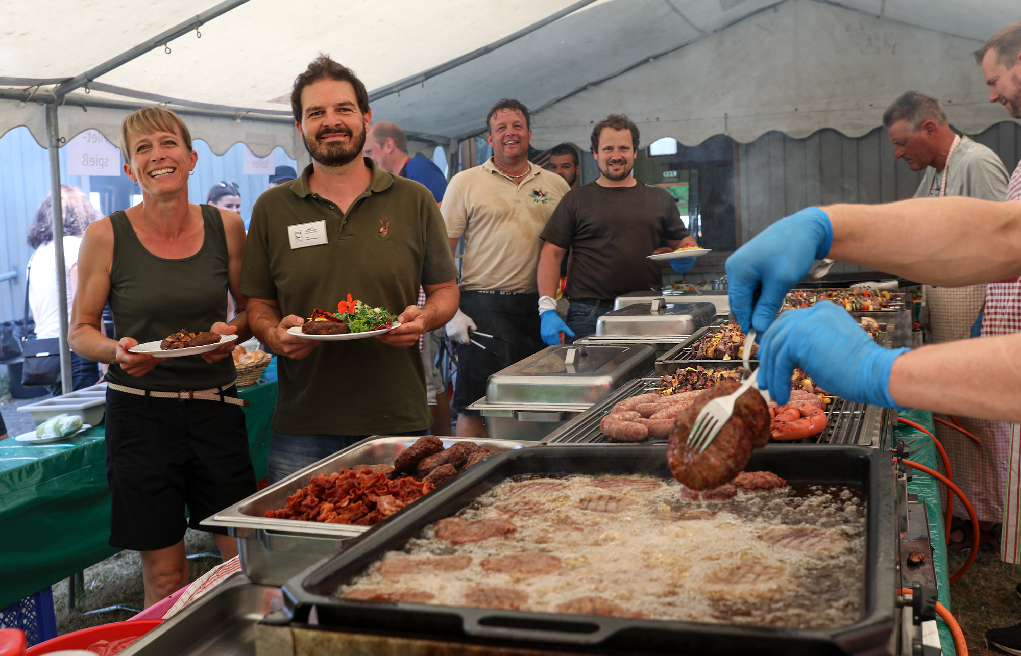 „Das gibts sonst nirgends in der Region, unser Wildfest ist meines Erachtens einzigartig“, schwärmt Denis Wiedmann über sein Wildgrillfest, das nach der Corona-Pause im Alfdorfer Ortsteil Hintersteinenberg an diesem Sonntag zum achten Mal stattfand. Wie der Name vermuten lässt, ging es um das Thema „Wild grillen“. „Wir wollen den Menschen zeigen, dass Wildfleisch auch durchaus etwas Leckeres für die Sommerzeit ist und nicht nur zu Weihnachten oder zu besonderen Anlässen schmeckt“, erläutert