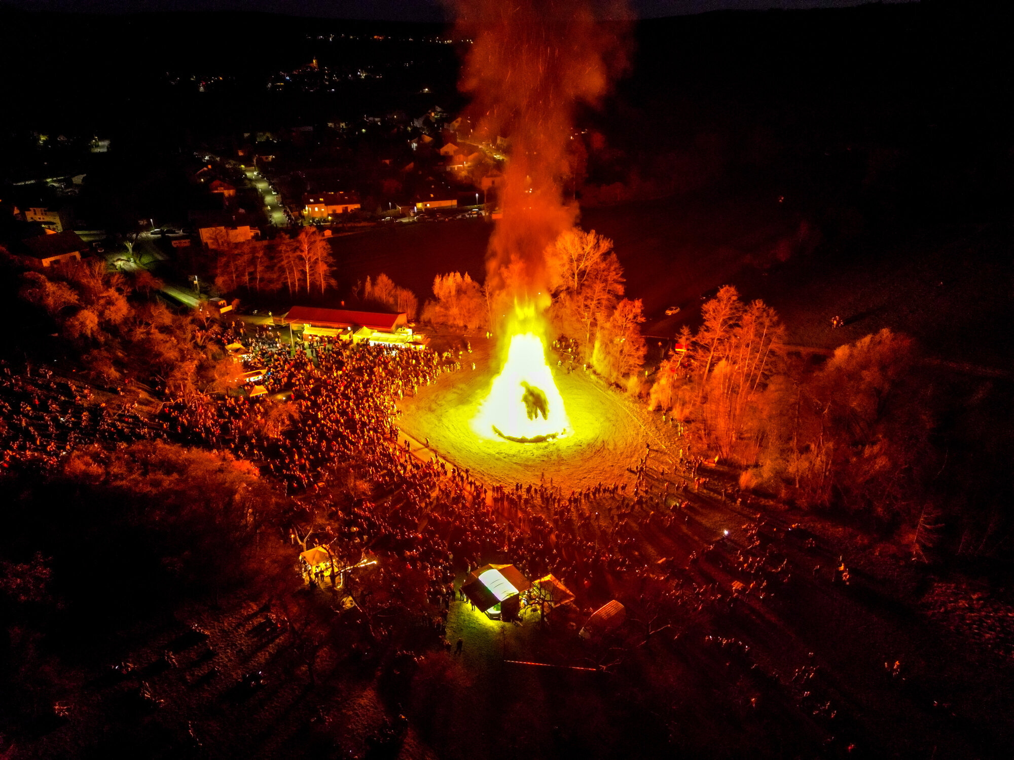 Berglen-Rettersburg. Am Abend des Karsamstags entzündet der Verein Eintracht Rettersburg bereits zum 37. Mal das traditionelle Groß-Osterfeuer. Etwa 3000 Paletten werden mit Fackeln in Brand gesetzt und bieten ein imposantes Feuerspektakel, das die sternenklare Nacht erhellt.