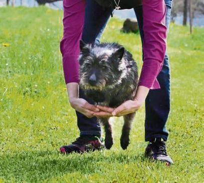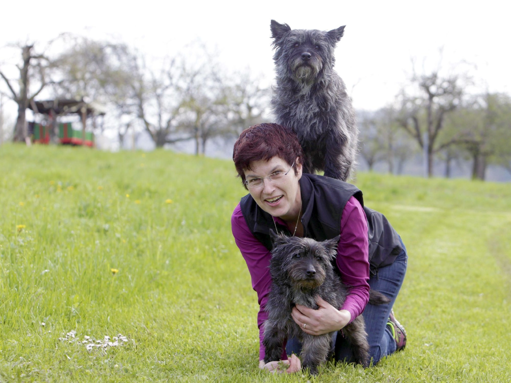 Klar hat auch Hundetrainerin Carmen Schmid aus Berglen noch was zu sagen, aber das Grundprinzip beim Dogdance (Hundetanz) ist es, zuerst den Hund etwas anbieten zu lassen. Das ist es, was der 52-Jährigen und ihren zwei Cairn-Terriern Gimli (12) und Yedi (7) so gefällt. „Rückwärtsgehen, Rollen oder Springen sind ganz natürliche Bewegungen. Bei Gimli habe ich erst nach fünf Jahren Dogdancing Figuren von mir dazugenommen.“ Aber woher weiß der Hund, wann er was machen soll? Ein schönes Erklärbeispiel ist die Geschichte von Yedi und dem Scharren.