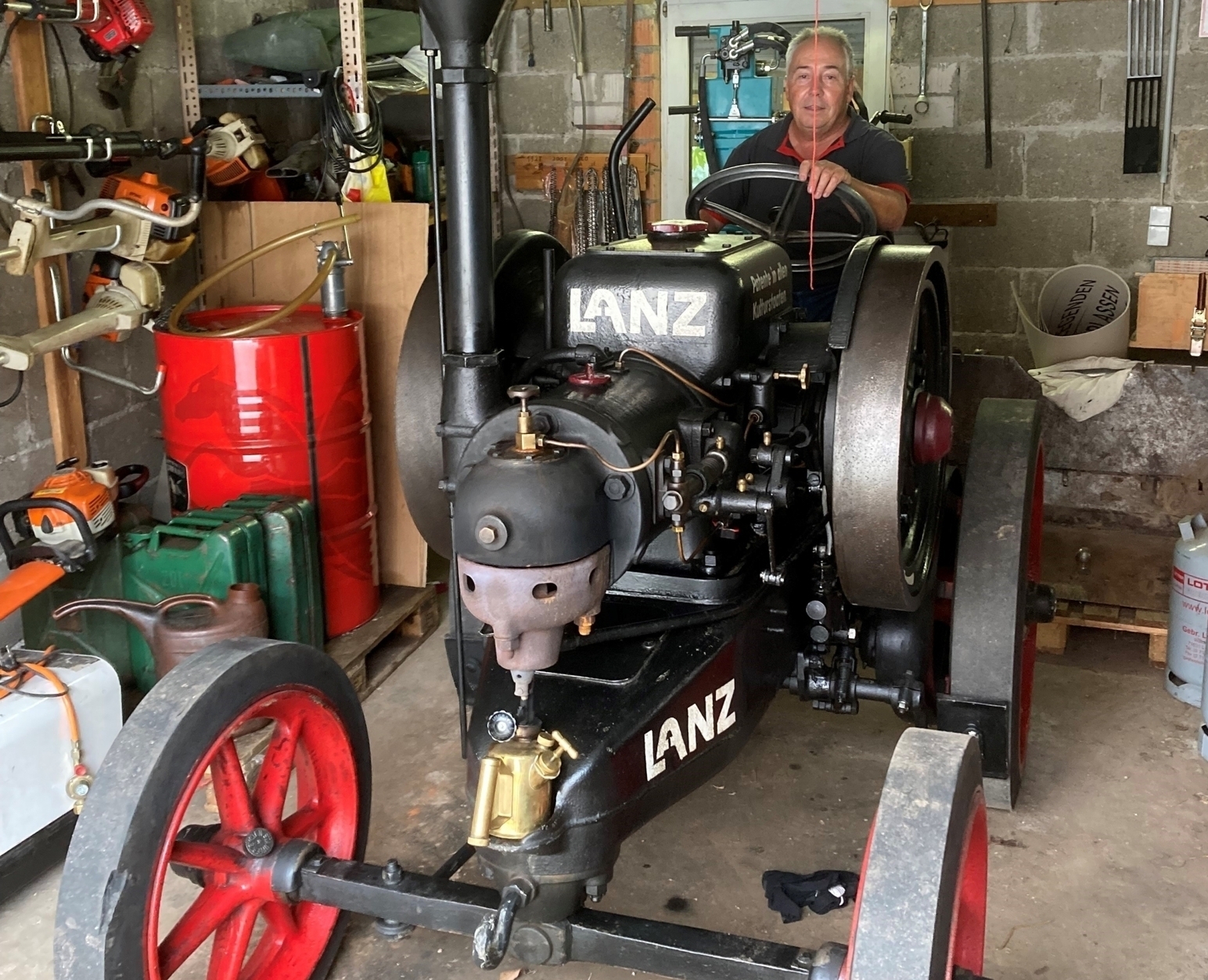 Über den „Ur-Bulldog“ von Lanz, der gerade bei ihm in der Garage steht, aber Werner Hering, einem Freund des Veteranenclubs gehört, kann Thomas Häußer stundenlang begeistert erzählen. Das Gefährt wird einer der „Stars“ sein beim Bulldog- und Schleppertreffen in Berglen, verbunden mit einem historischen Feldtag, am Sonntag, 6. August.