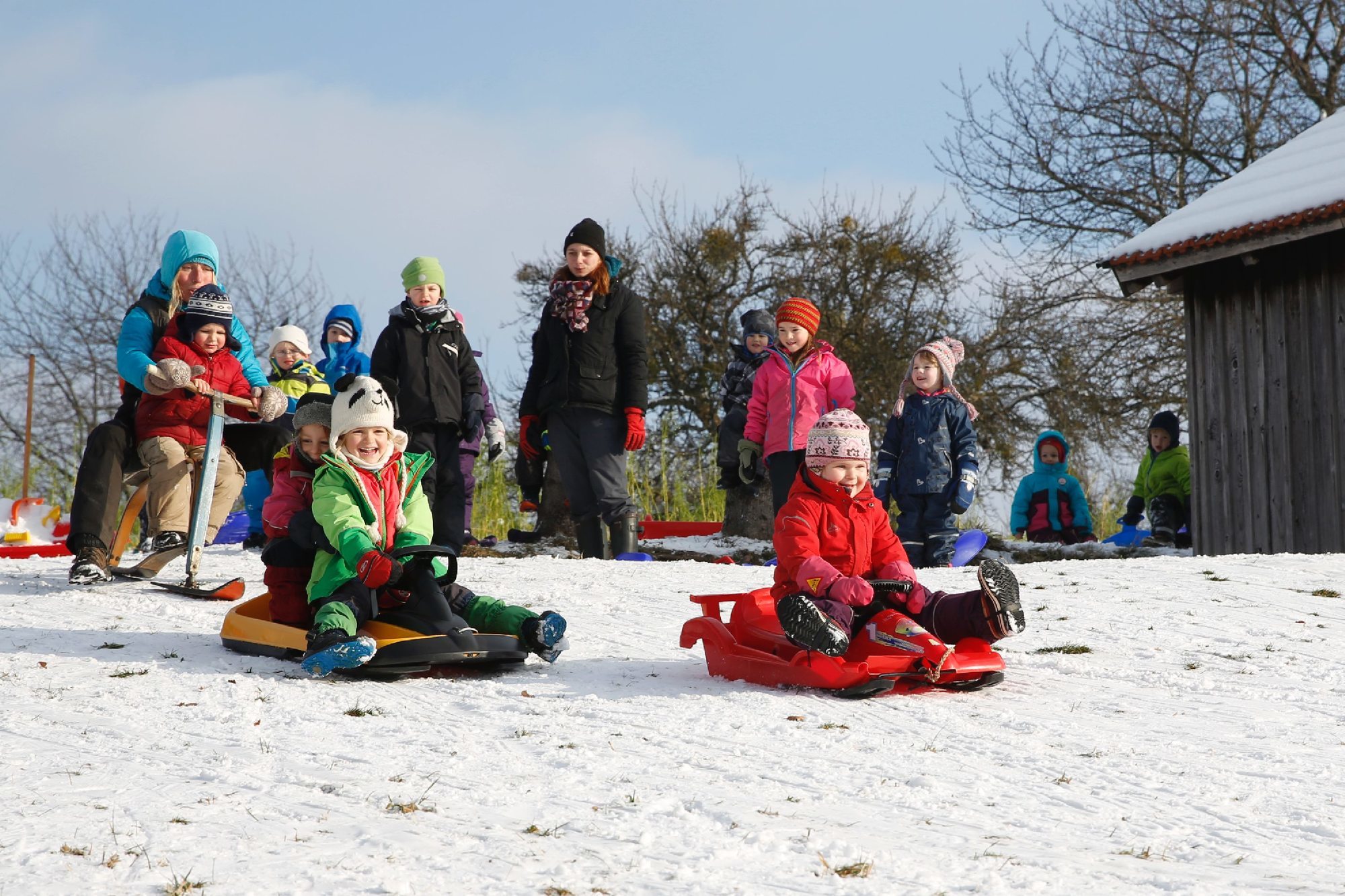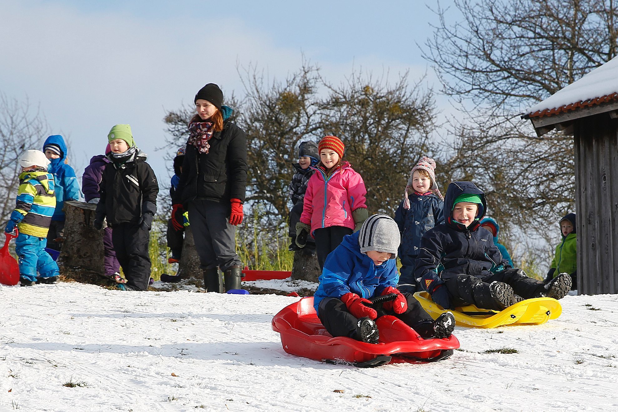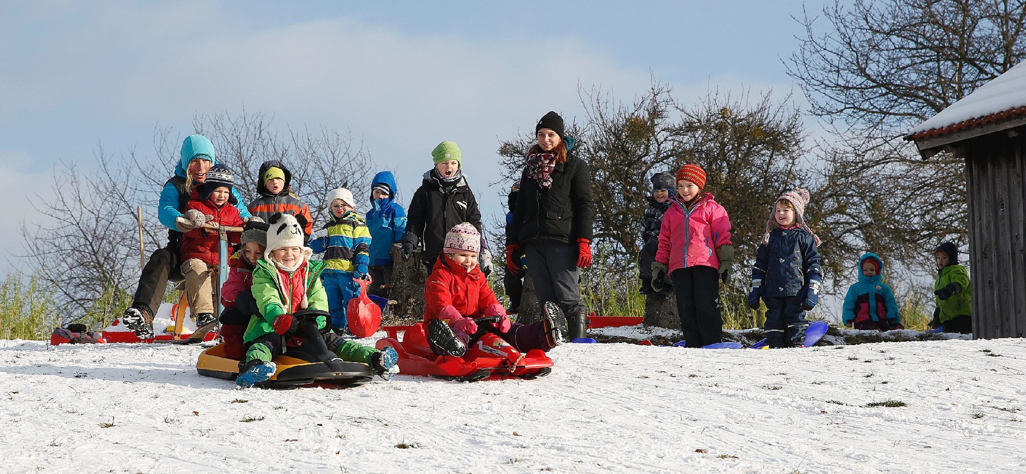 Der Waldkindergarten fährt Schlitten