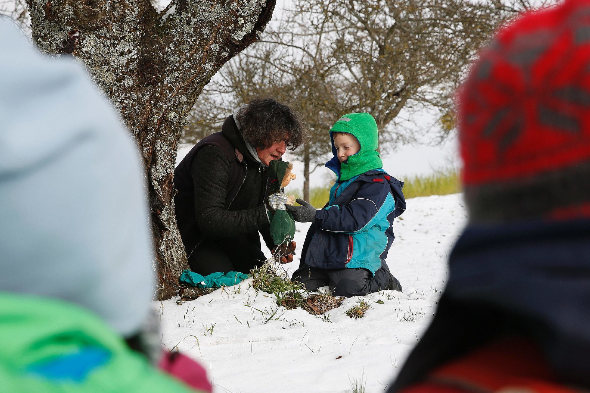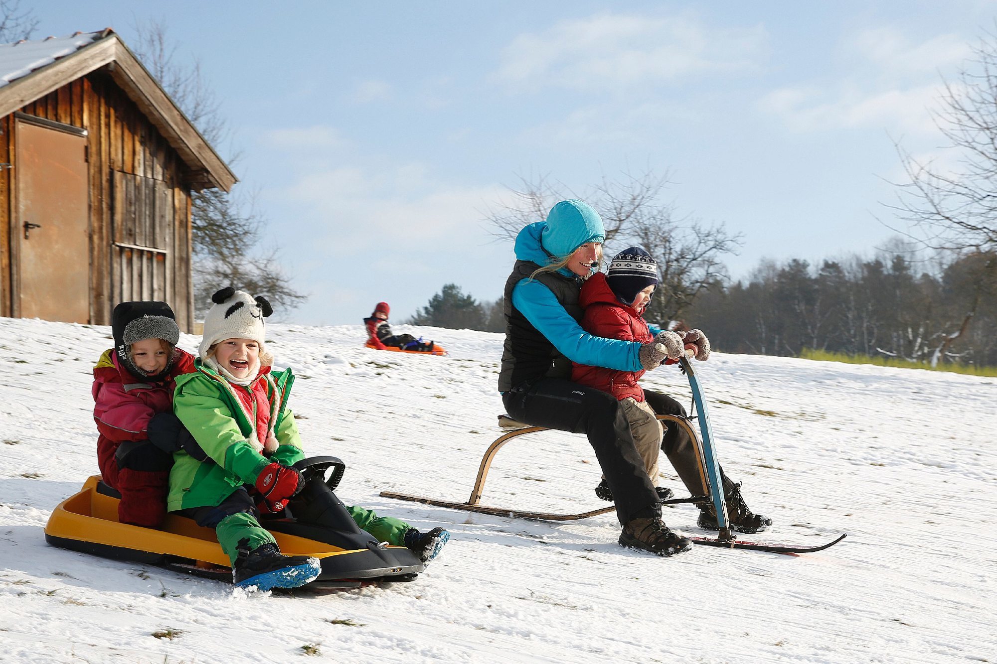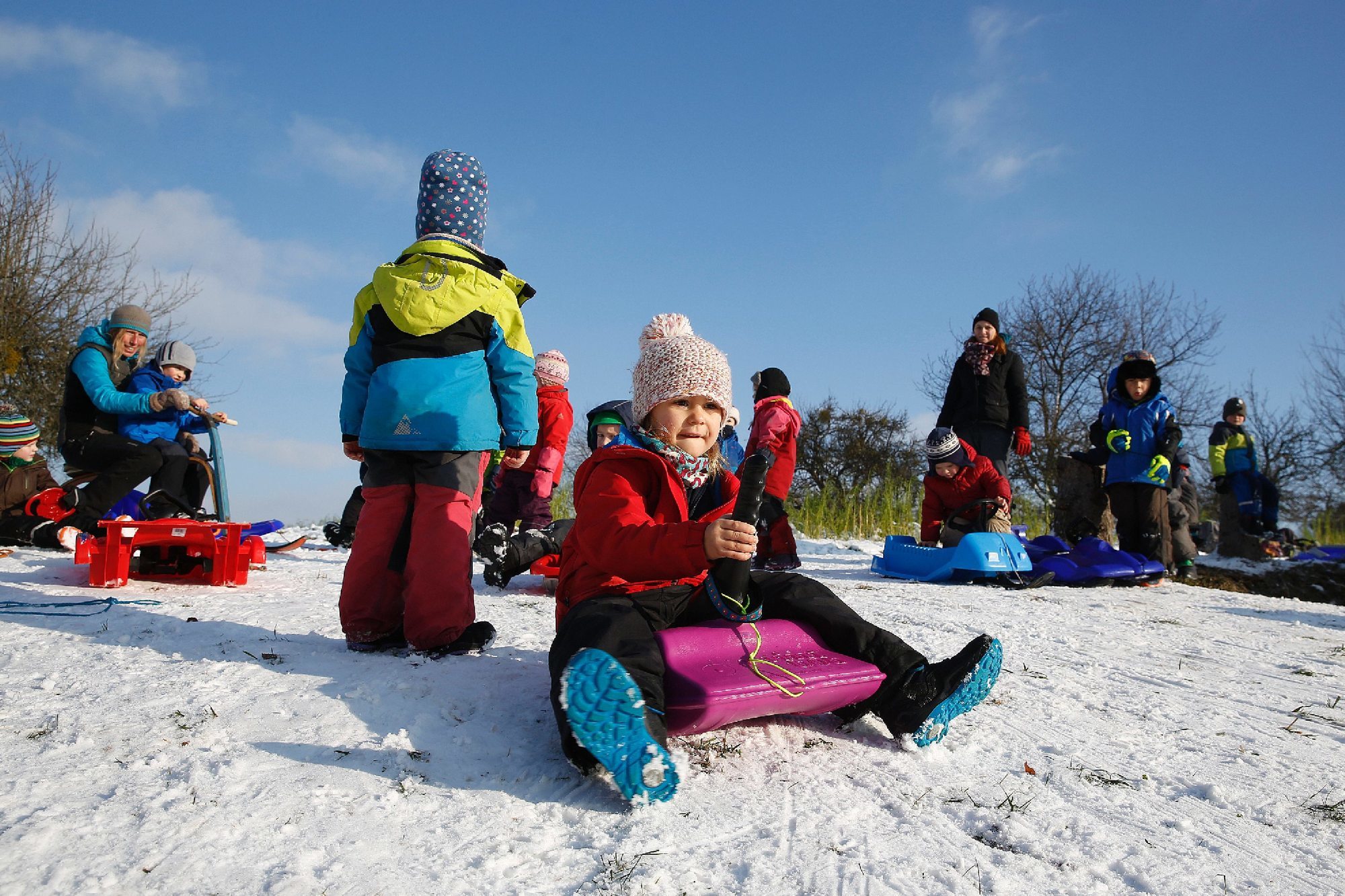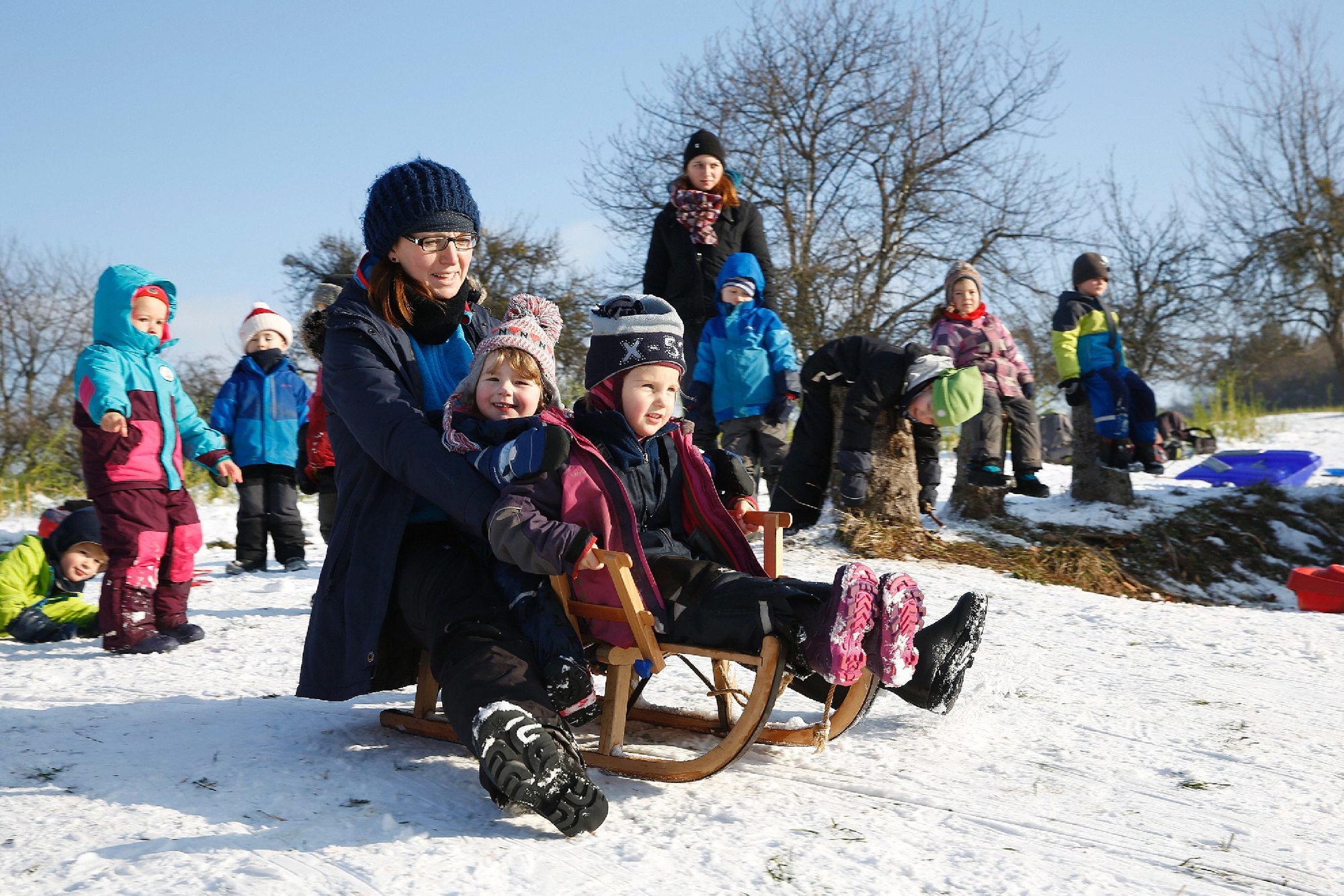 Der Waldkindergarten fährt Schlitten