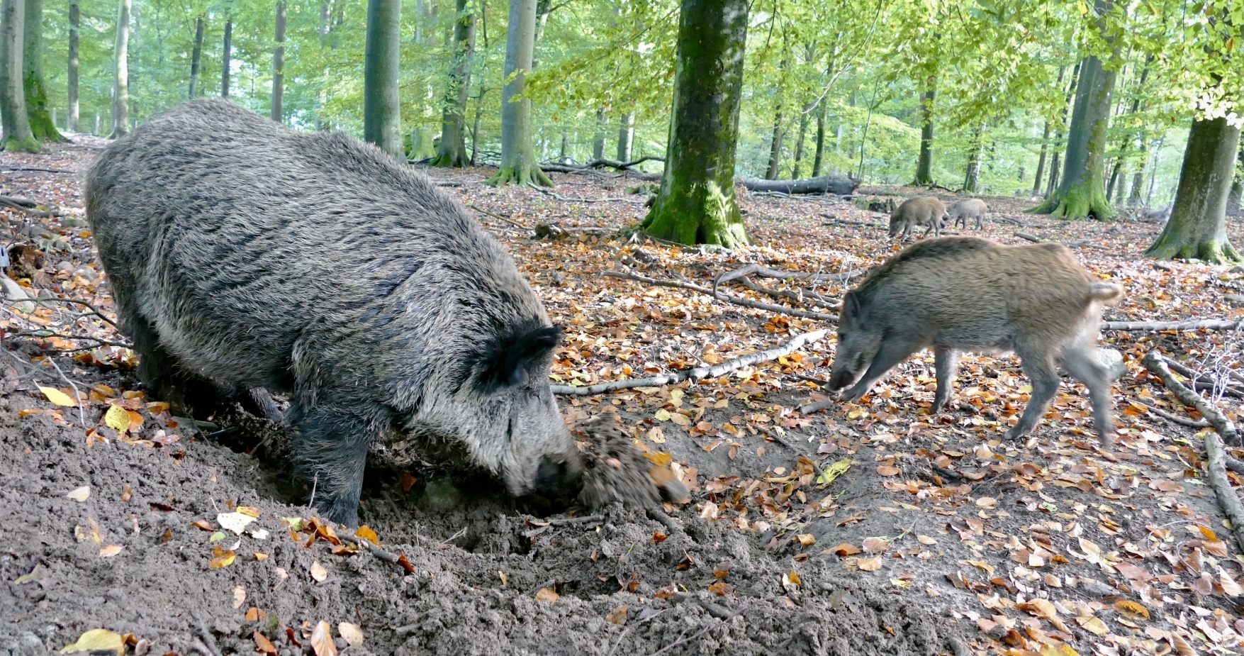 Die Sauen seien nun mal hochmobil, legten im Gegensatz zu Rehwild, wenn sie aufgeschreckt werden, Kilometer zurück, seien ständig in Bewegung, wüssten genau, wo sie sich sicher abducken können, etwa in Brombeerhecken, im Walddickicht. Außerdem würden sie durch den intensiven Maisanbau immer fitter. Mittlerweile trügen die Bachen das ganze Jahr über. „Wir kommen nicht mehr hinterher, weil die sich derart vermehren“, so Riker. Einzeljagden mit hohem Zeitaufwand seien ohnehin sinnlos weil ineffektiv, ergänzt Stauffer.