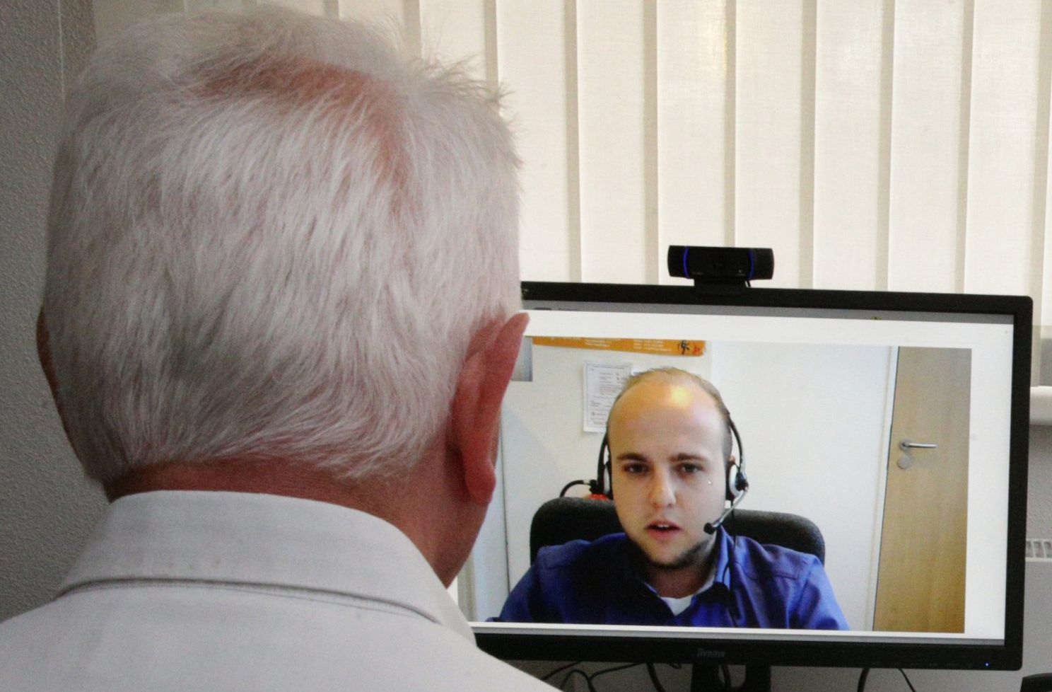 Franz Sigl (71) sitzt vor dem Computer in einem Raum unweit des Berglener Bürgerbüros. Auf dem Bildschirm taucht Dominik Altherr auf, Berater bei der Deutschen Rentenversicherung. Er stellt sich kurz vor und fragt den Oppelsbohmer nach seinem Anliegen. Die Stimme von Altherr ist klar verständlich, die Verbindung gut. Franz Sigl sitzt aufrecht auf seinem Stuhl wie bei einem echten Beratungsgespräch und hört aufmerksam zu. Im Vergleich zu Dominik Altherr hat er keine lästigen Kopfhörer auf. Die Stimme kommt aus Lautsprechern neben dem Bildschirm.
