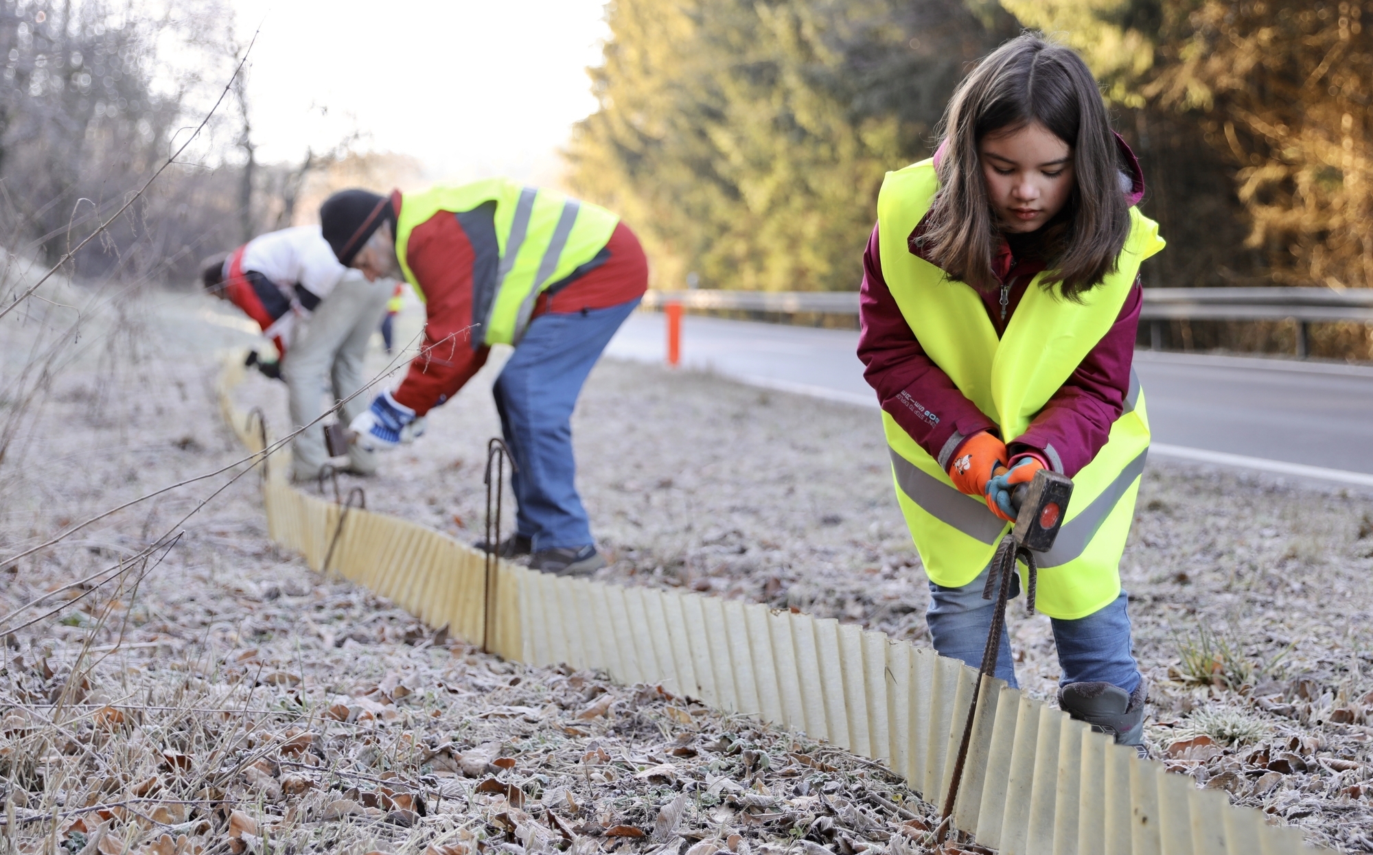 Sie versperren den Kröten den Weg, um sie vor dem Tod zu bewahren: Naturschützer haben am Samstag an der Landstraße zwischen Steinach und Hösslinswart Krötenschutzzäune aufgestellt. Allein an diesem Abschnitt wollen in den kommenden Wochen Tausende Tiere die Fahrbahn überqueren, um an ihre Laichplätze zurückzukehren. Jeden Abend nach Einbruch der Dunkelheit werden die Tiere an den Zäunen von freiwilligen Helfern aufgesammelt und sicher auf die andere Straßenseite gebracht.